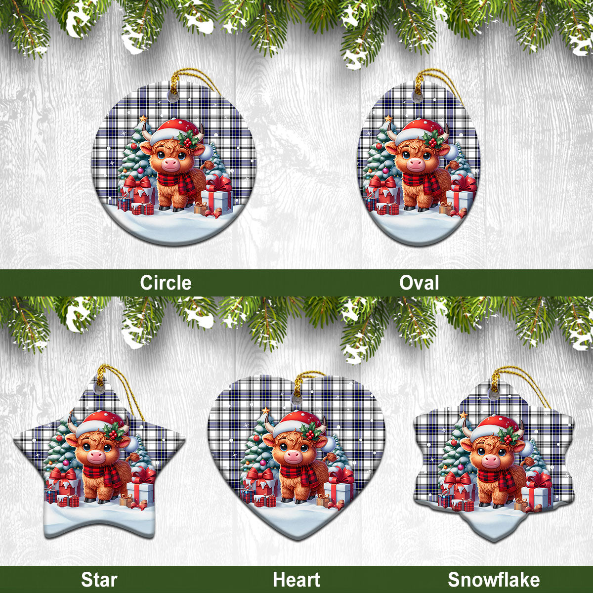 Hannay Modern Tartan Christmas Ceramic Ornament - Highland Cow Winter Style