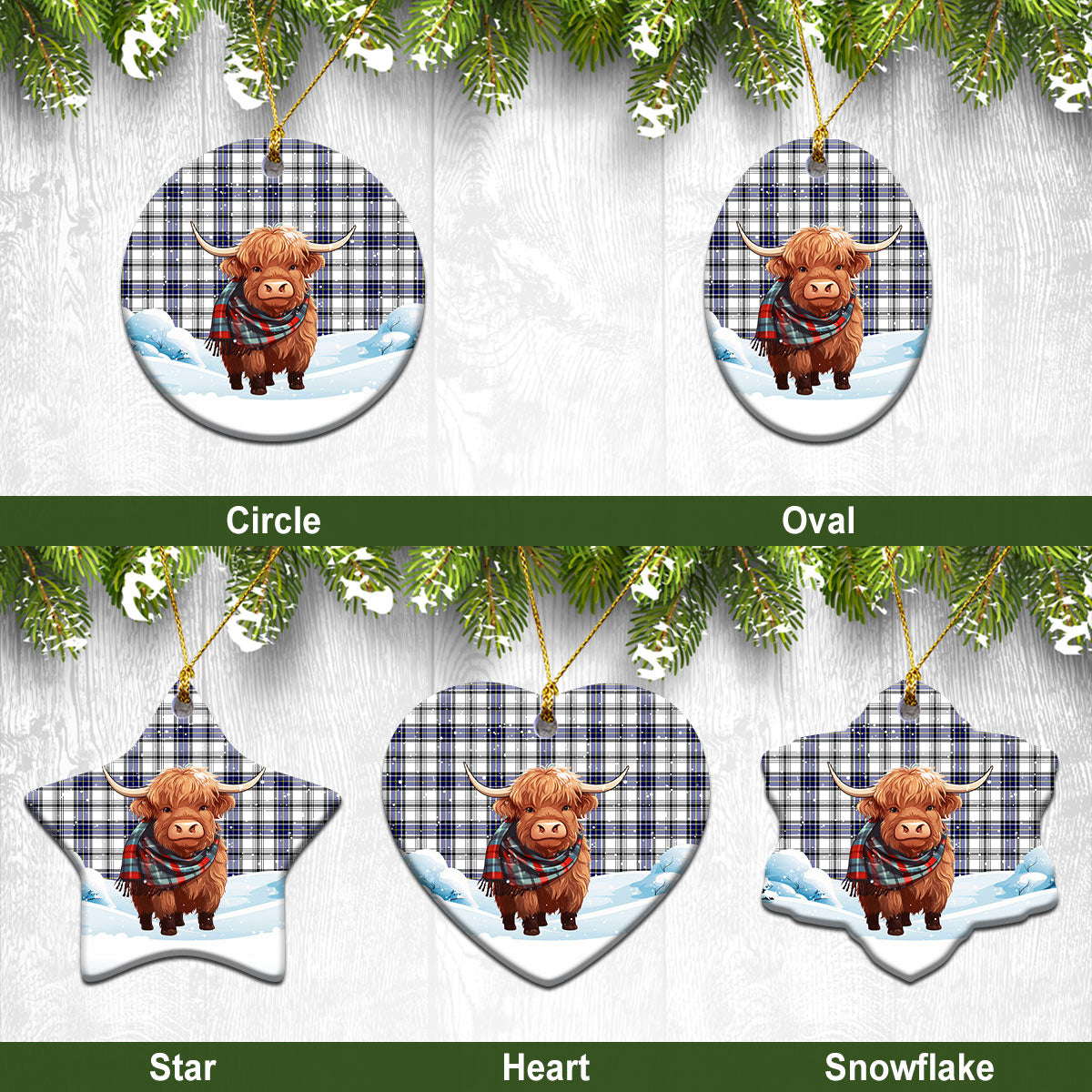 Hannay Modern Tartan Christmas Ceramic Ornament - Highland Cows Snow Style