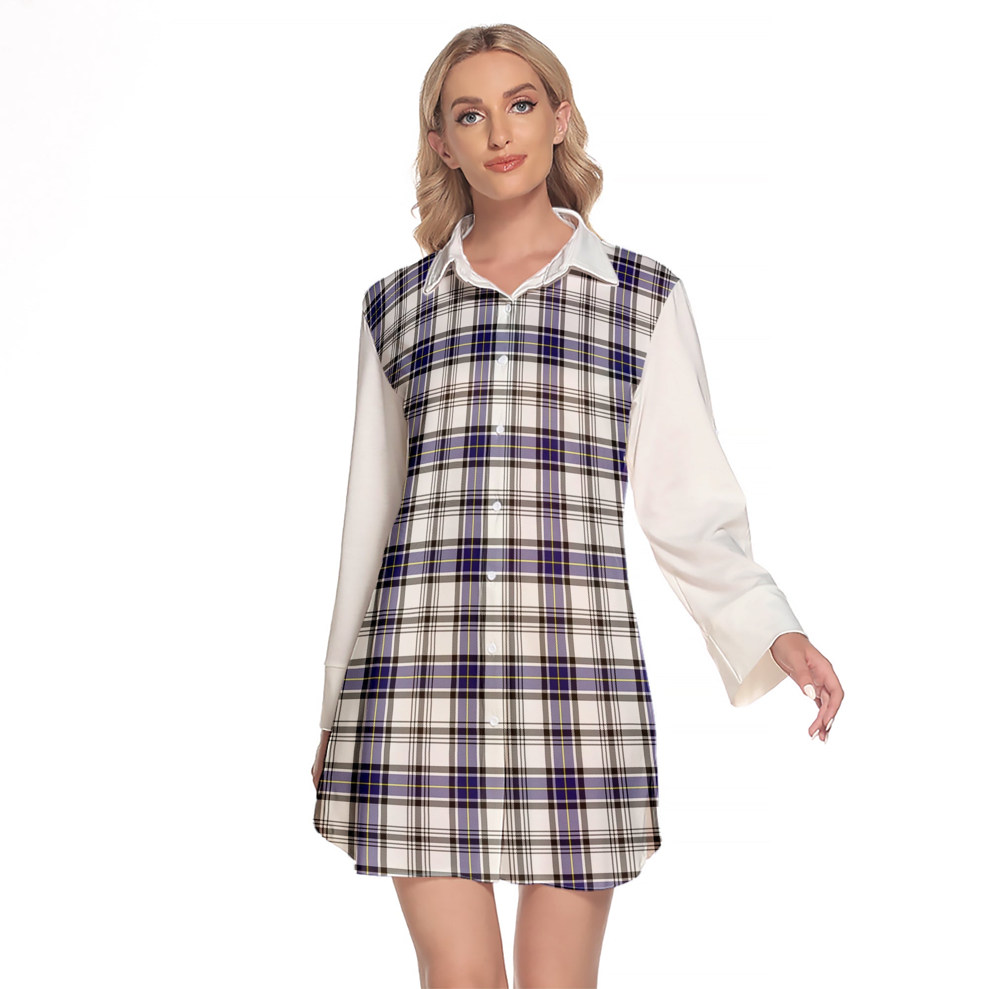Hannay Modern Tartan Women's Lapel Shirt Dress With Long Sleeve