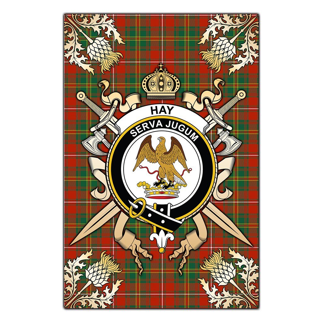 Hay Ancient Tartan Crest Black Garden Flag - Gold Thistle Style