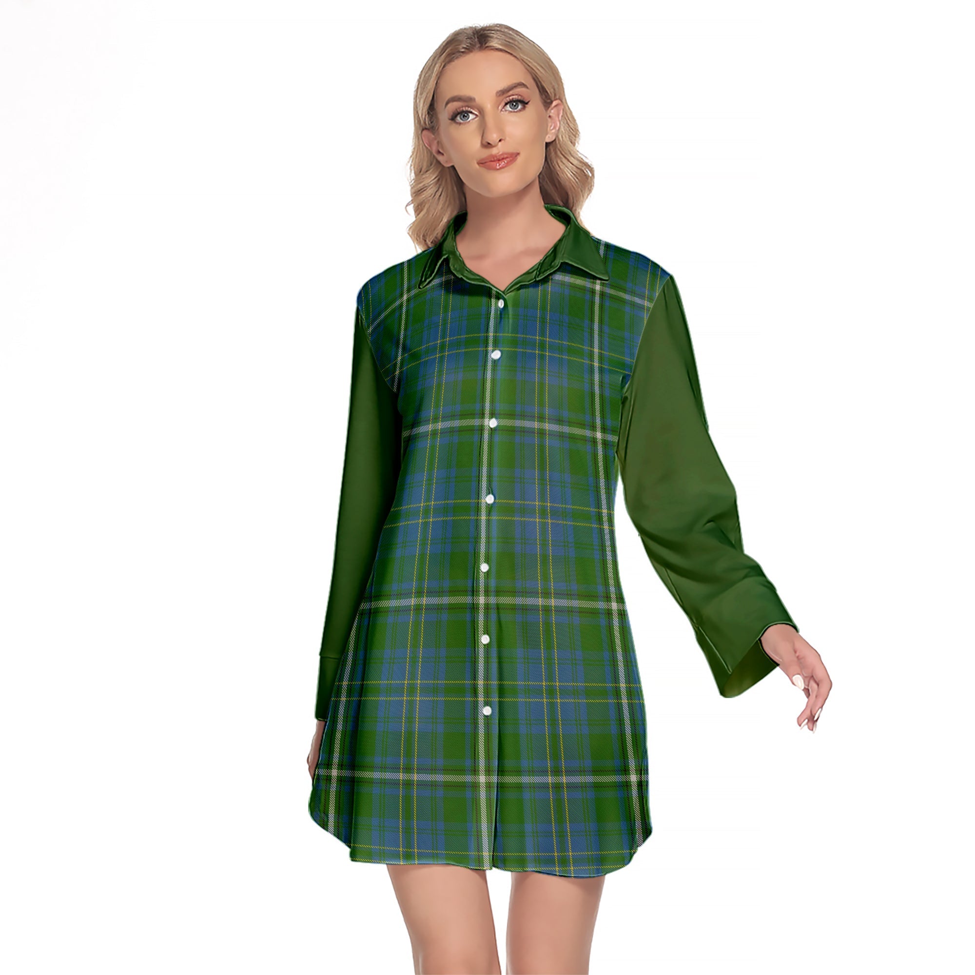 Hay Hunting Tartan Women's Lapel Shirt Dress With Long Sleeve