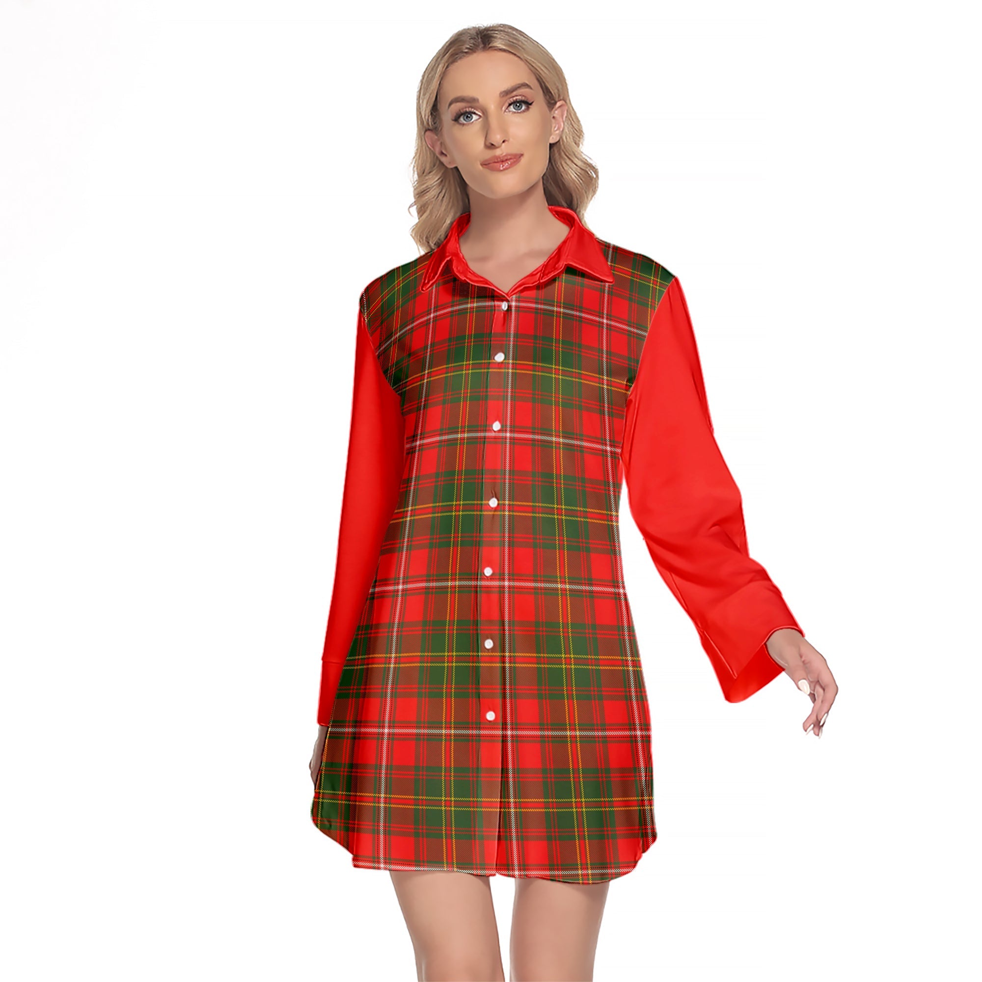 Hay Modern Tartan Women's Lapel Shirt Dress With Long Sleeve