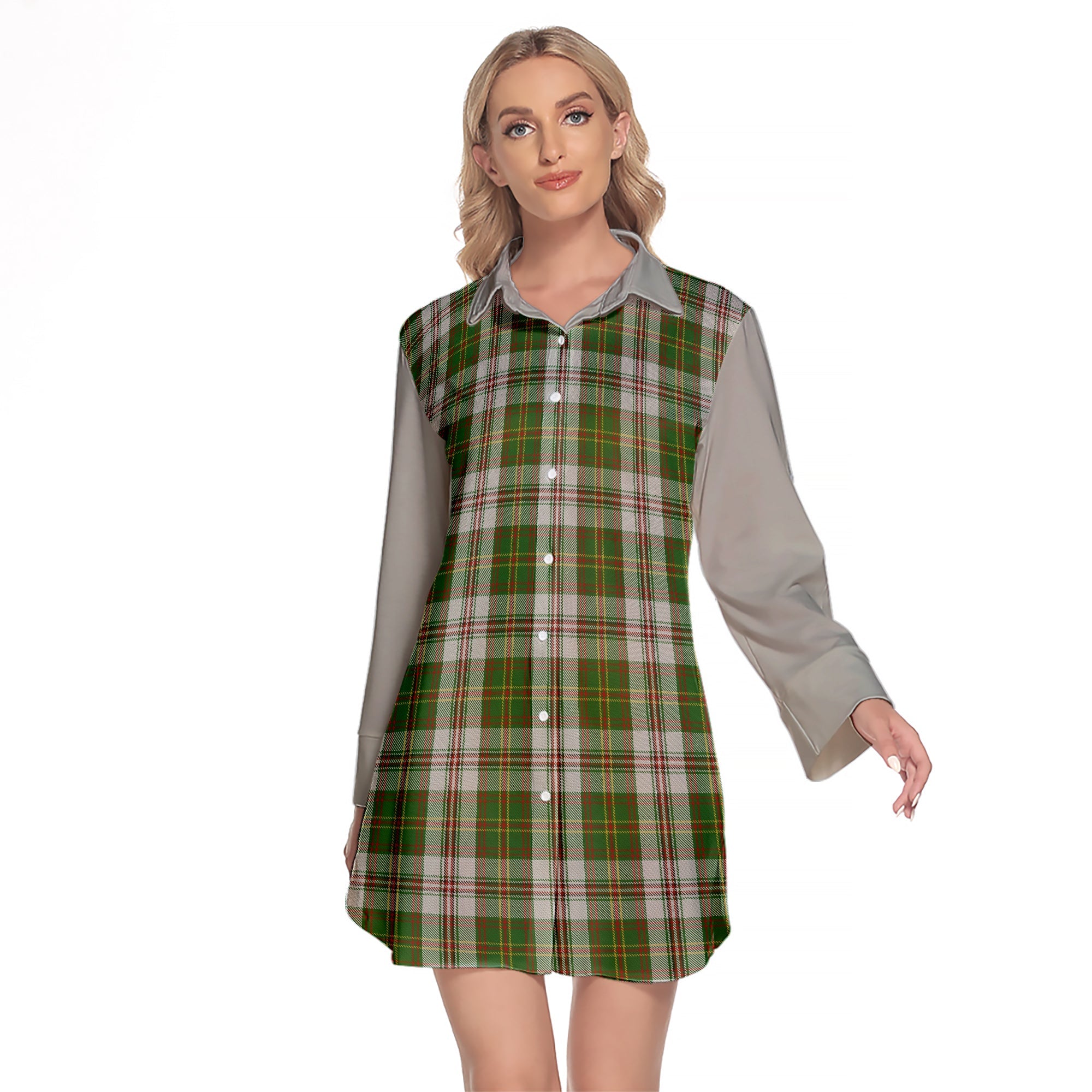 Hay White Dress Tartan Women's Lapel Shirt Dress With Long Sleeve