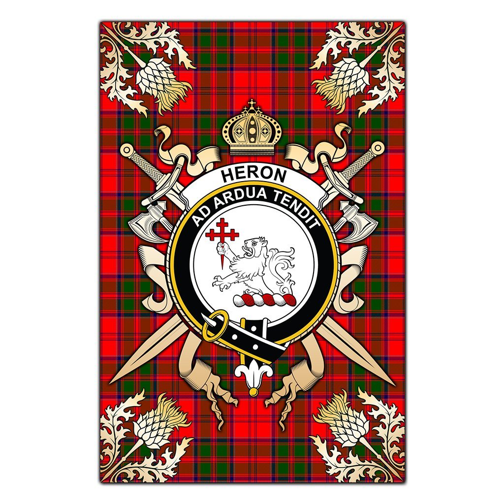 Heron Tartan Crest Black Garden Flag - Gold Thistle Style