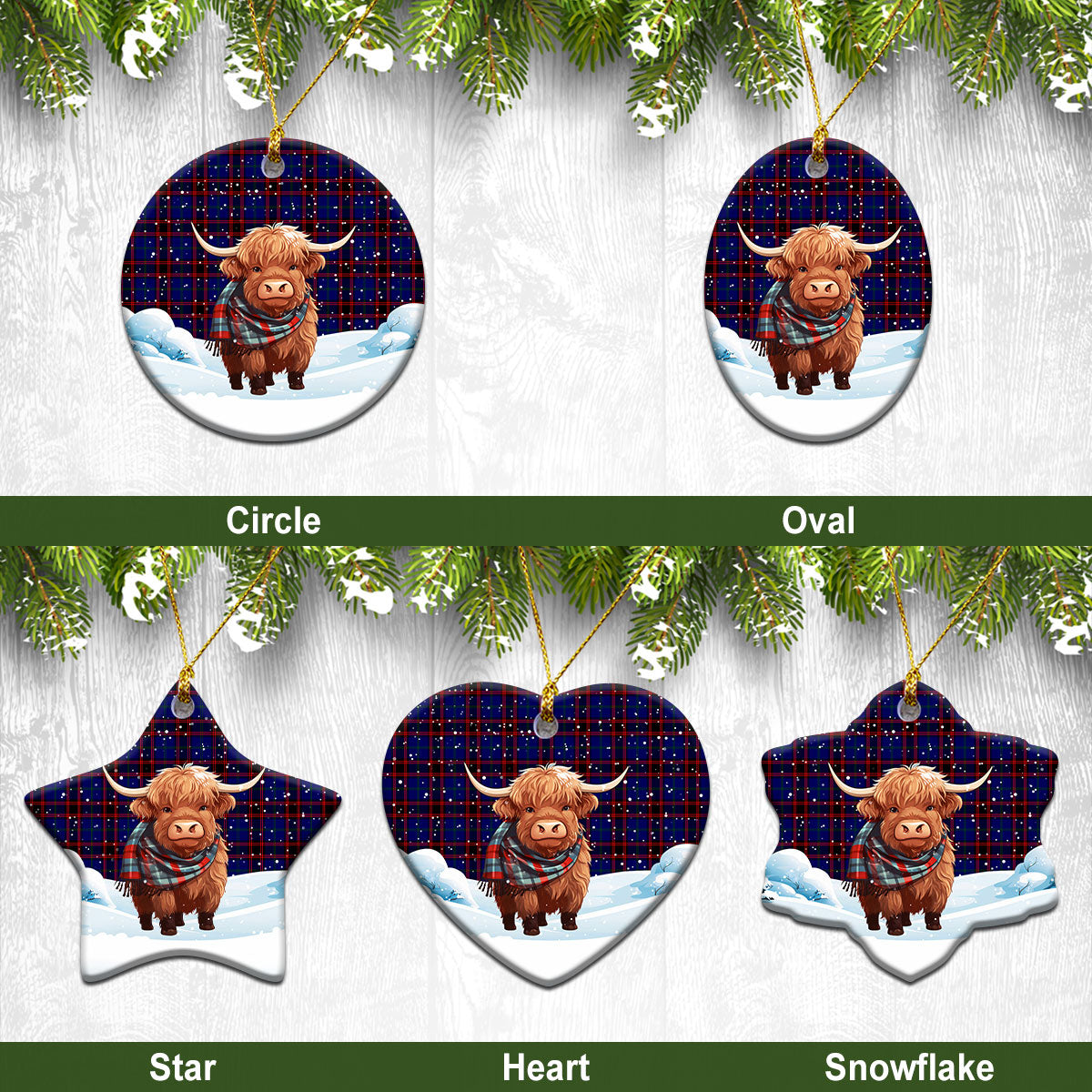 Home Modern Tartan Christmas Ceramic Ornament - Highland Cows Snow Style