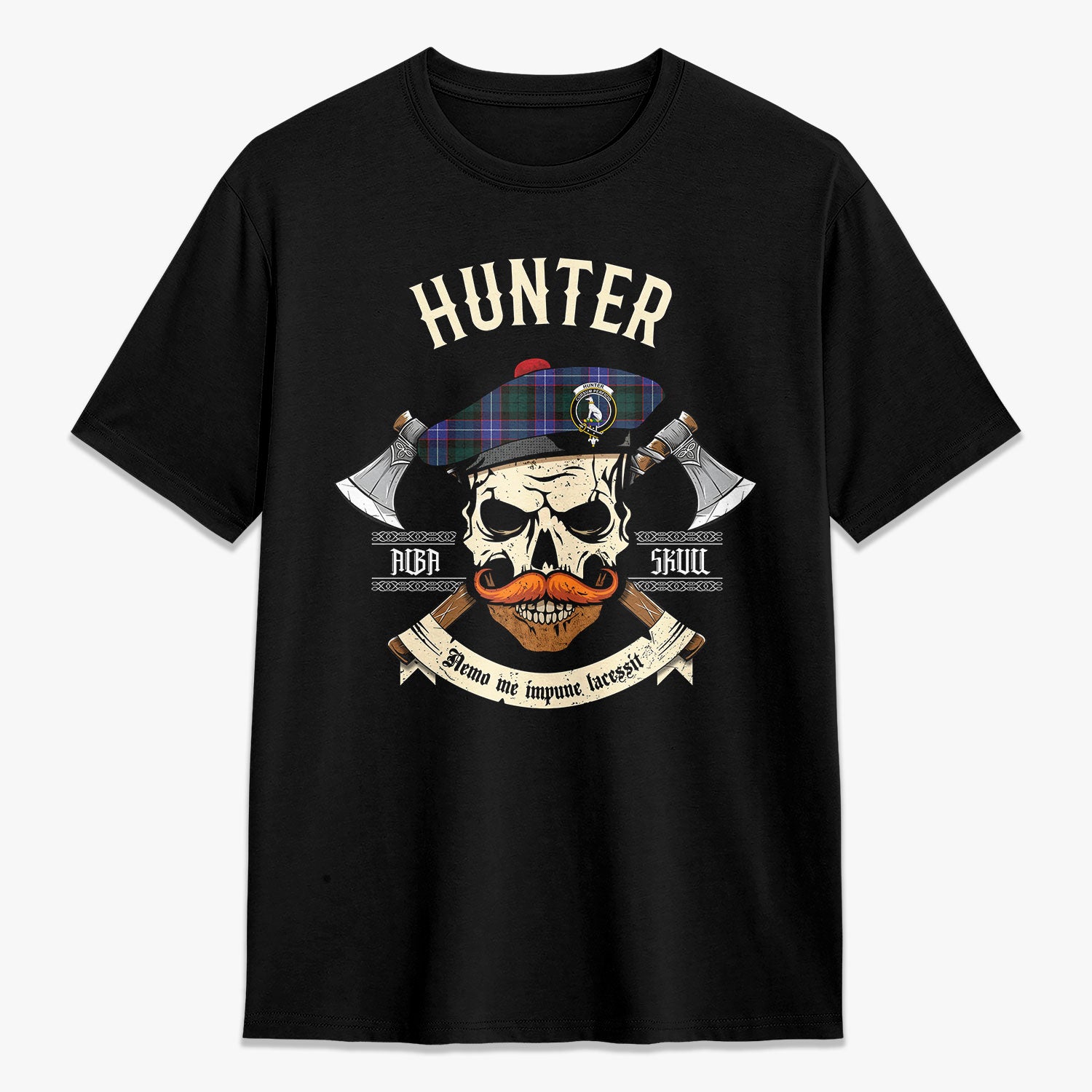 Hunter Modern Tartan Crest 2D T-shirt - Alba Skull Style,