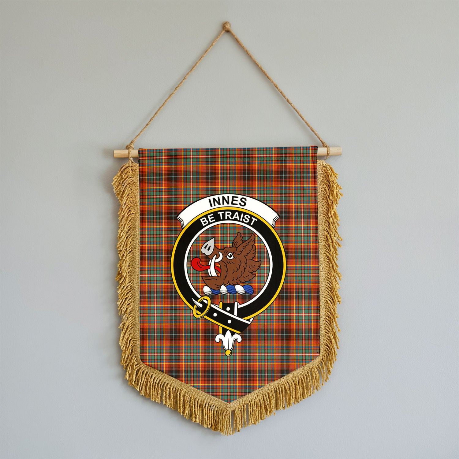 Innes Ancient Tartan Crest Wall Hanging Banner - Wood Pole