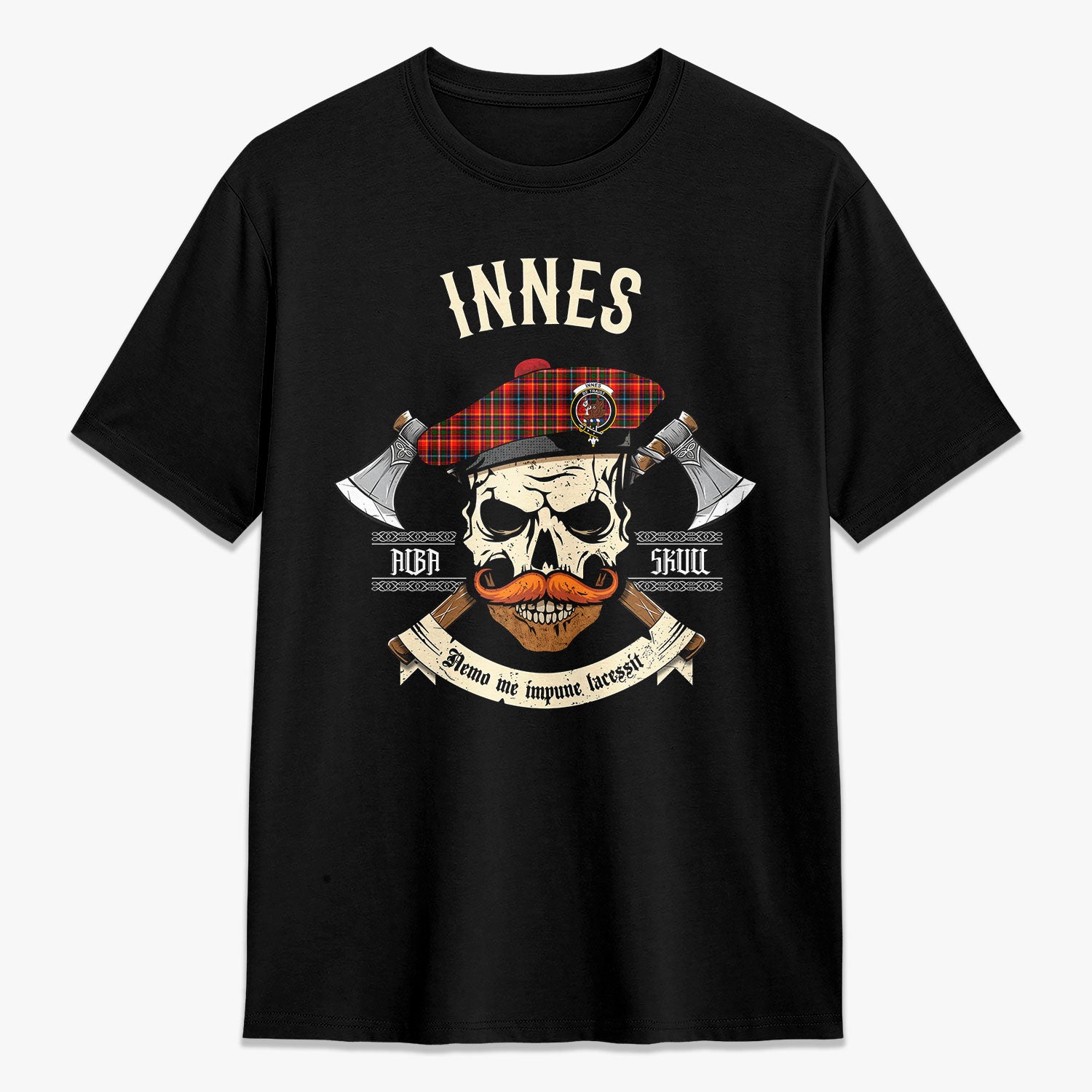 Innes Modern Tartan Crest 2D T-shirt - Alba Skull Style,