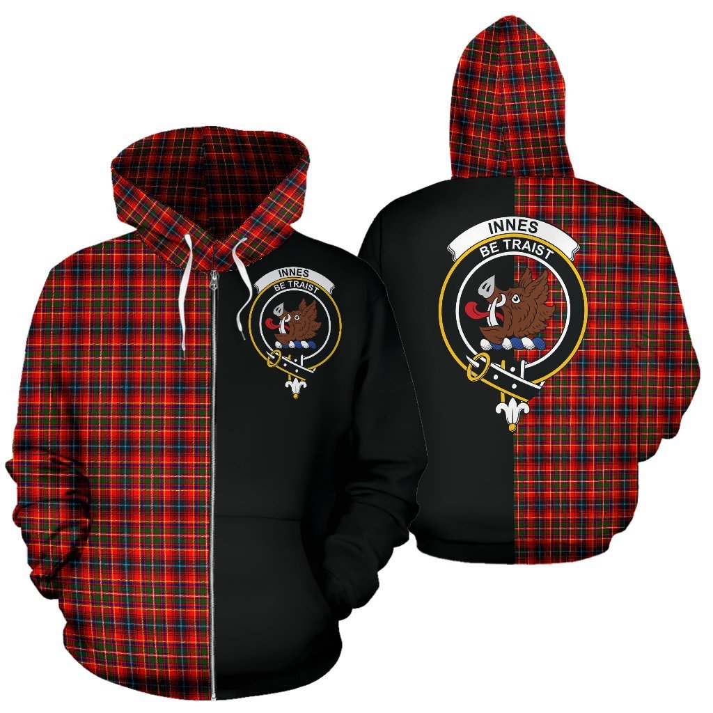 Innes Modern Tartan Crest Zipper Hoodie - Half Of Me Style