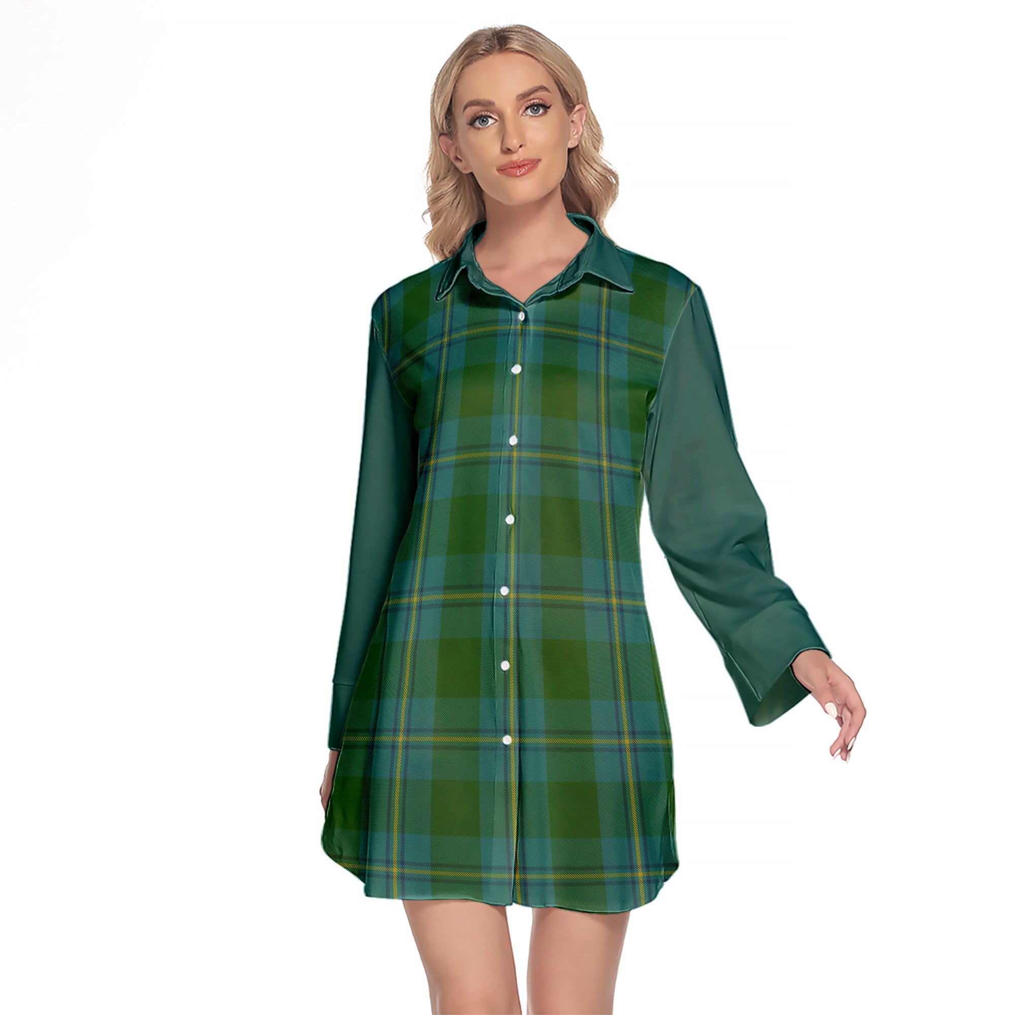 Irving Of Bonshaw Tartan Women's Lapel Shirt Dress With Long Sleeve