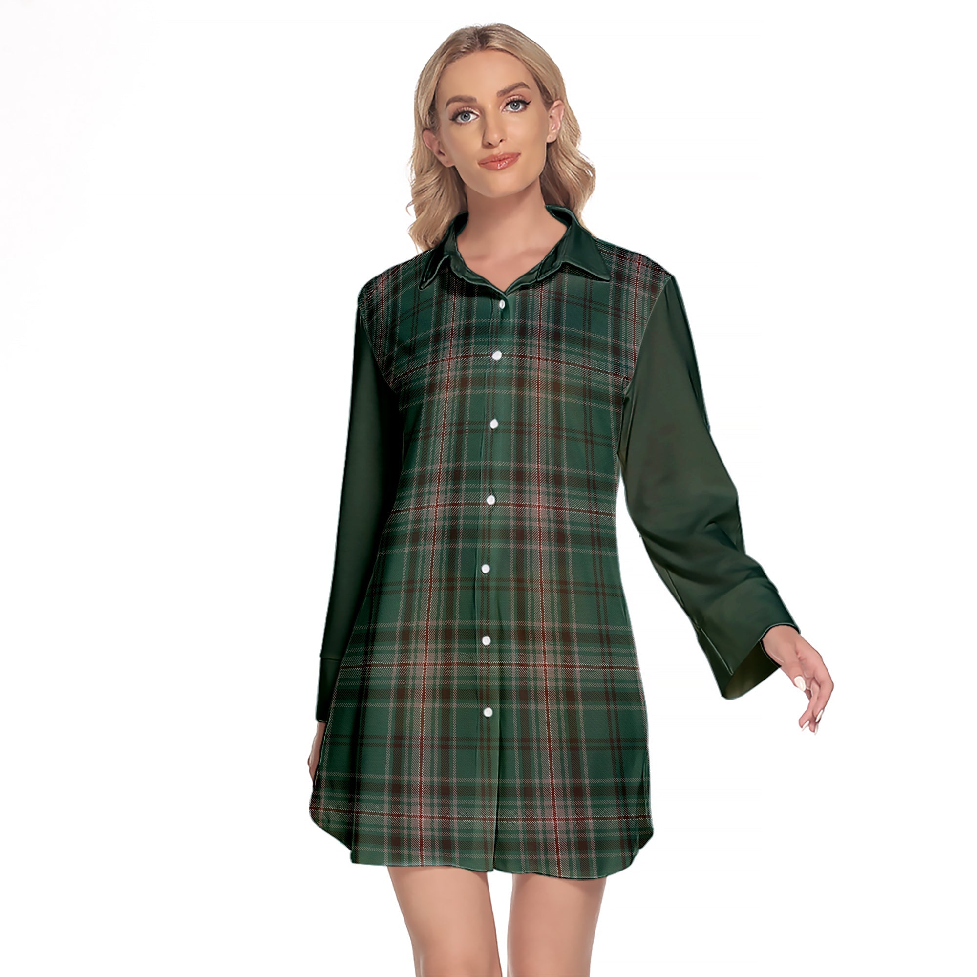 Kelly Of Sleat Hunting Tartan Women's Lapel Shirt Dress With Long Sleeve