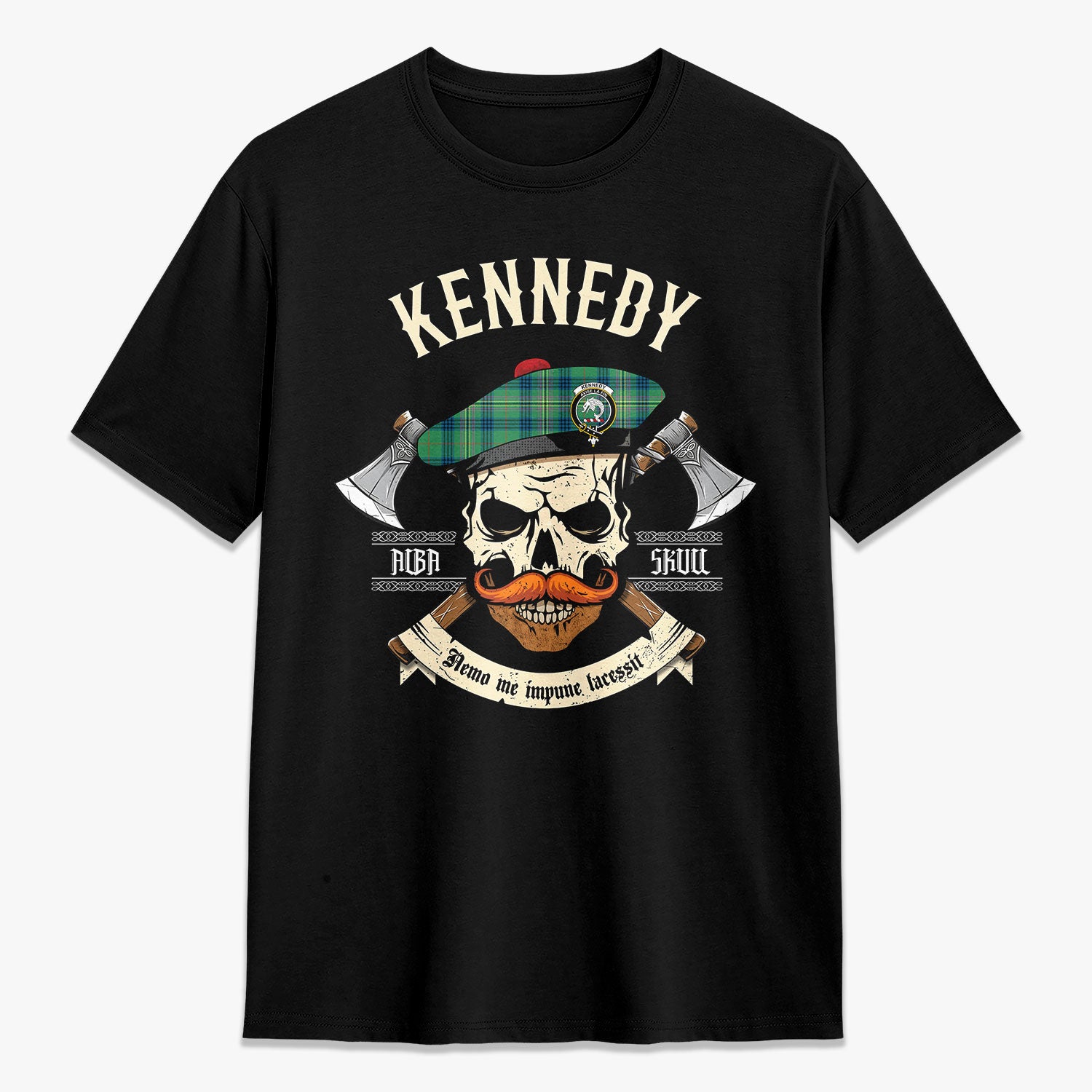 Kennedy Ancient Tartan Crest 2D T-shirt - Alba Skull Style,