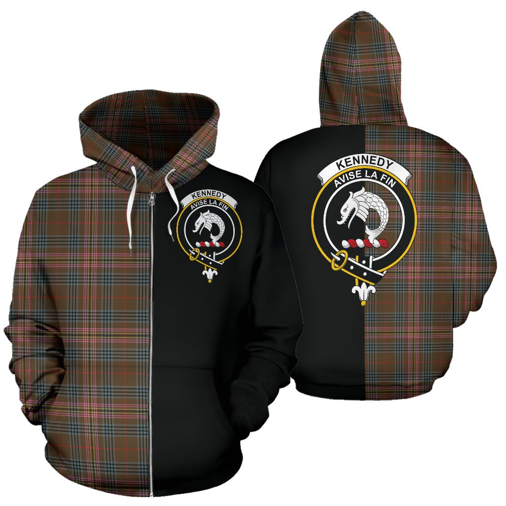 Kennedy Weathered Tartan Crest Zipper Hoodie - Half Of Me Style