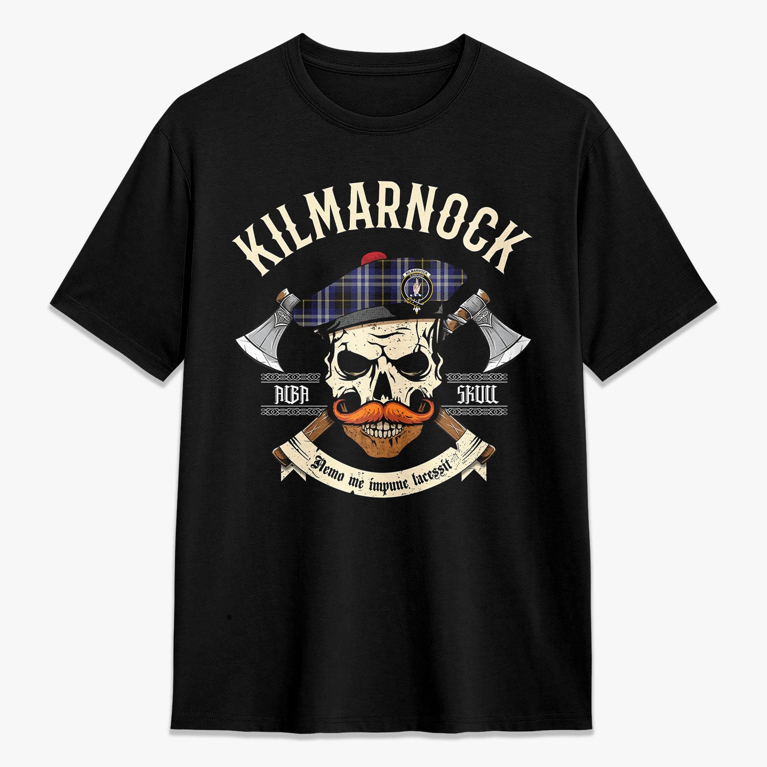 Kilmarnock Tartan Crest 2D T-shirt - Alba Skull Style,