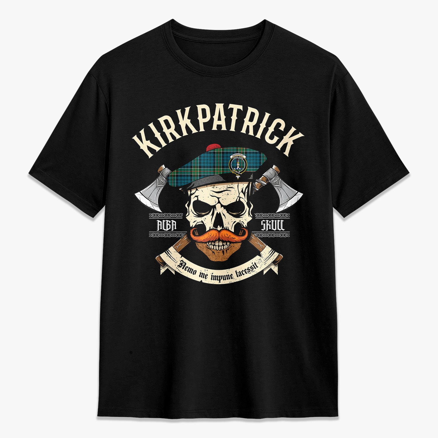 Kirkpatrick Ancient Tartan Crest 2D T-shirt - Alba Skull Style,