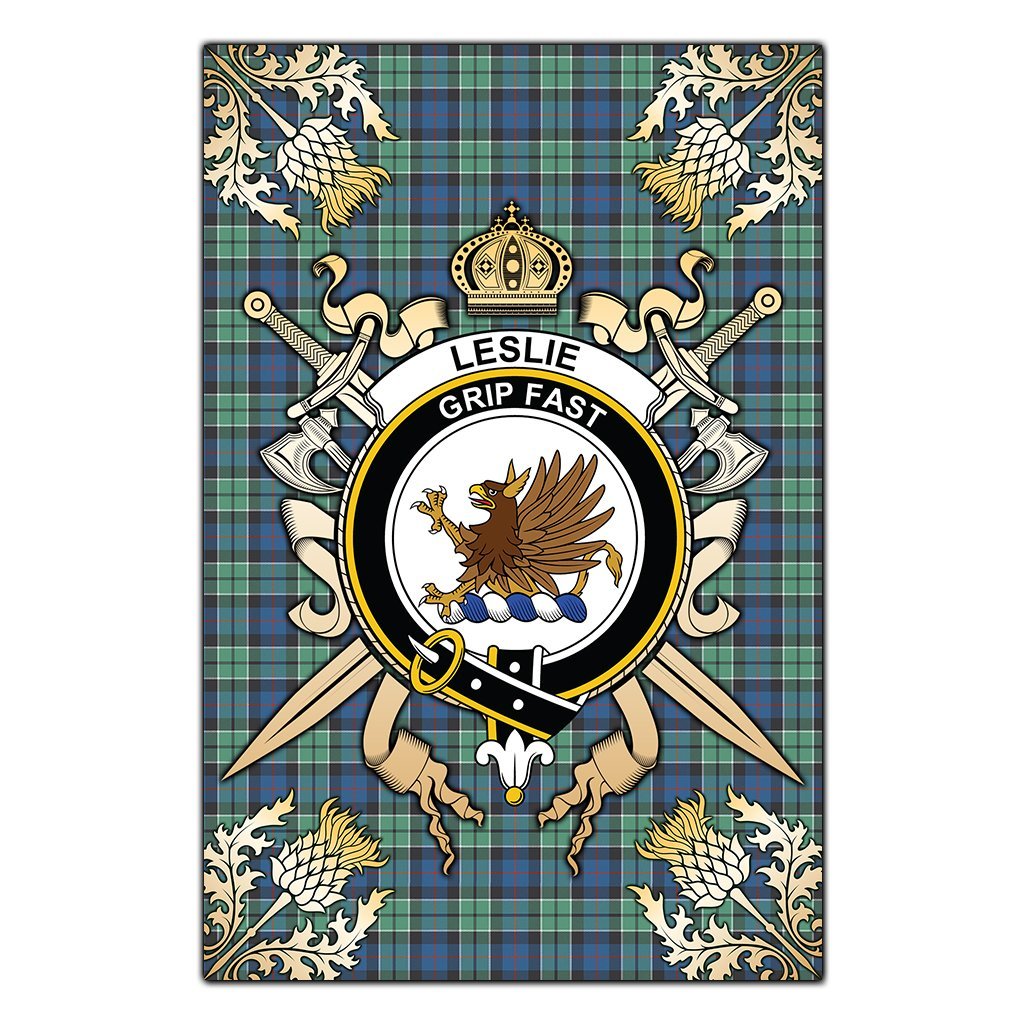 Leslie Hunting Ancient Tartan Crest Black Garden Flag - Gold Thistle Style