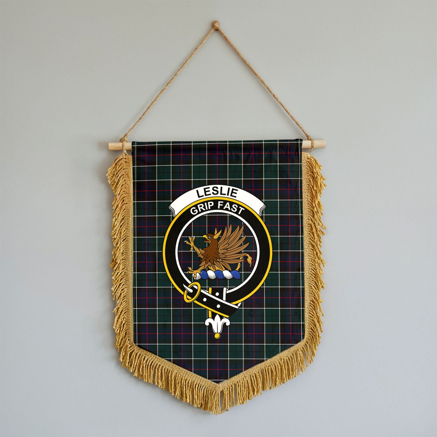 Leslie Hunting Modern Tartan Crest Wall Hanging Banner - Wood Pole
