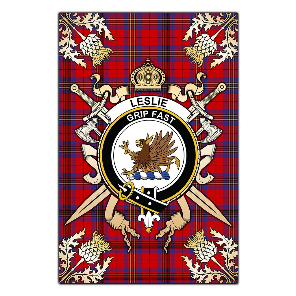Leslie Modern Tartan Crest Black Garden Flag - Gold Thistle Style