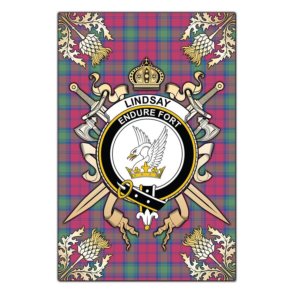 Lindsay Ancient Tartan Crest Black Garden Flag - Gold Thistle Style