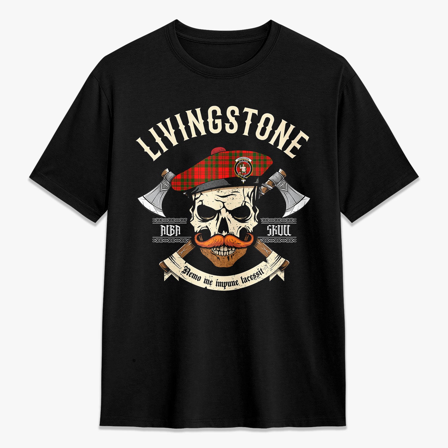 Livingstone Tartan Crest 2D T-shirt - Alba Skull Style,