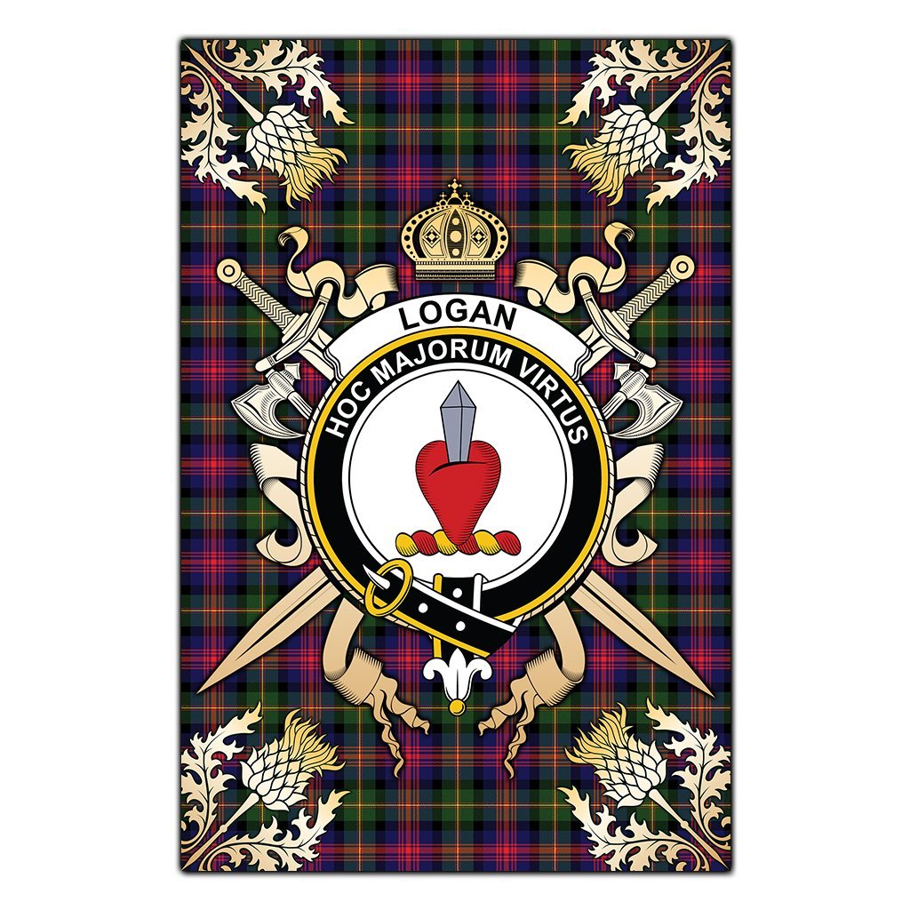Logan Modern Tartan Crest Black Garden Flag - Gold Thistle Style