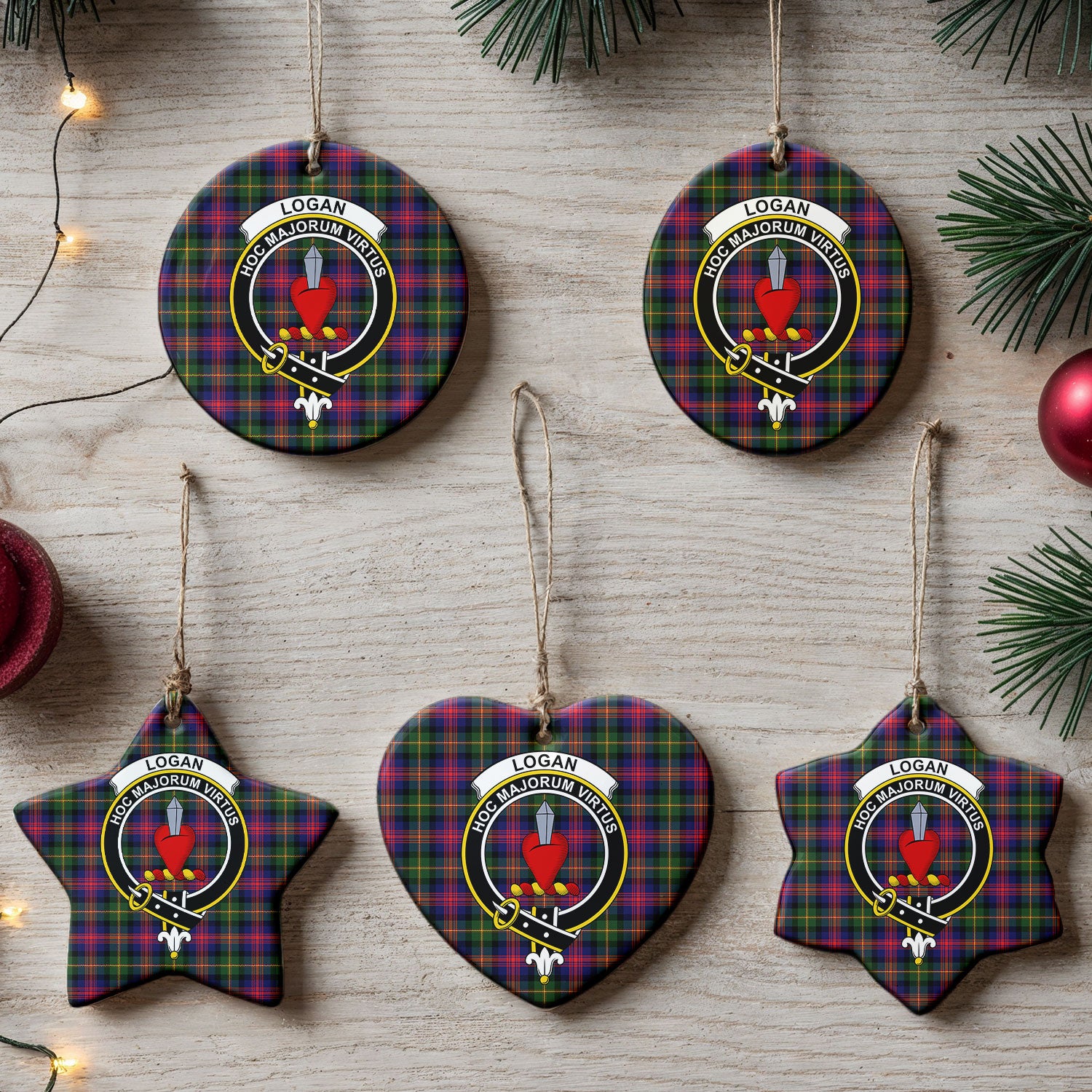 Logan Modern Tartan Crest Christmas Ceramic Ornament