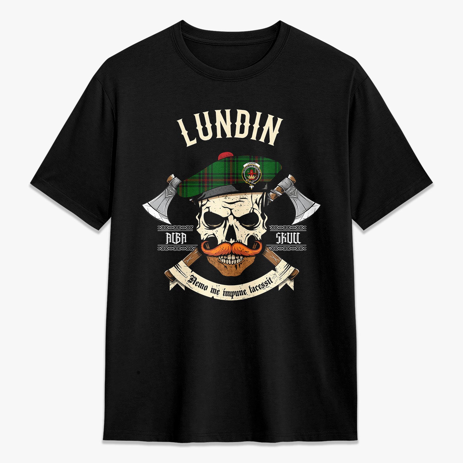 Lundin Tartan Crest 2D T-shirt - Alba Skull Style,