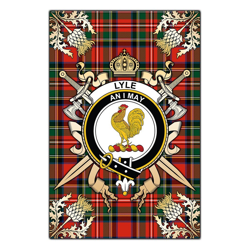 Lyle Tartan Crest Black Garden Flag - Gold Thistle Style