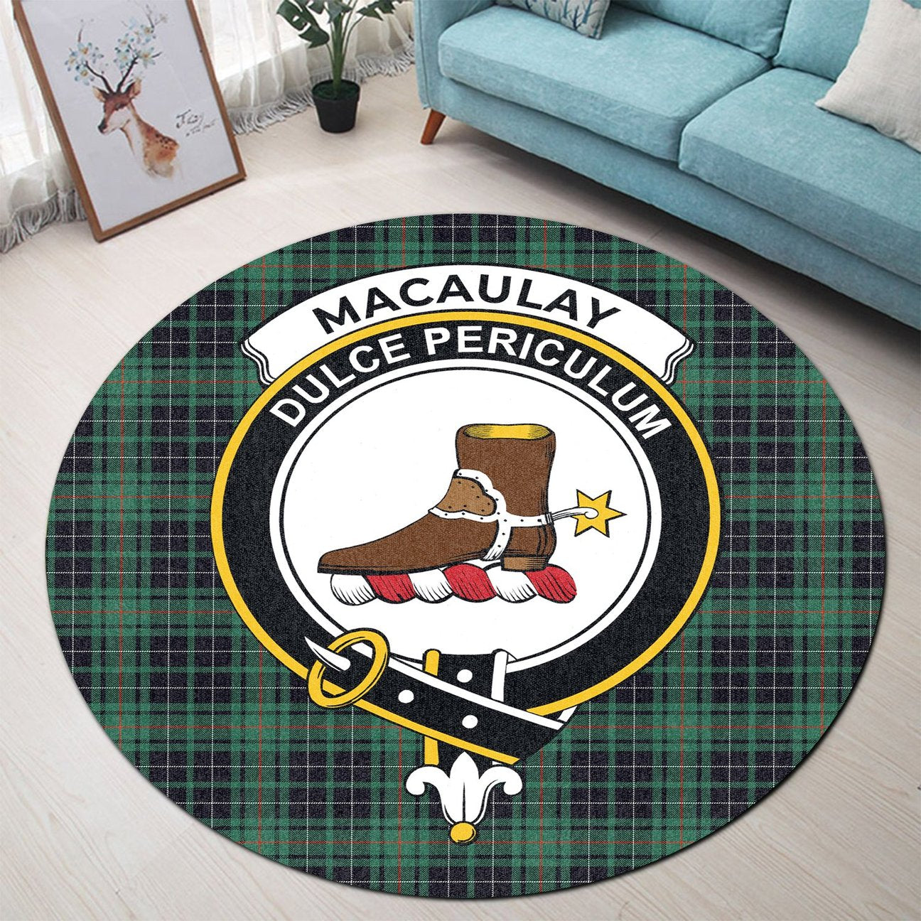 MacAulay Hunting Ancient Tartan Crest Round Rug