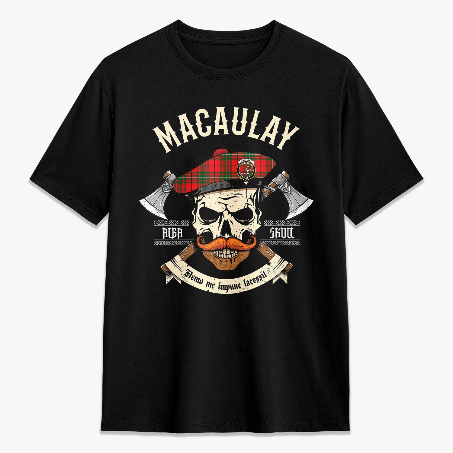 MacAulay Modern Tartan Crest 2D T-shirt - Alba Skull Style,