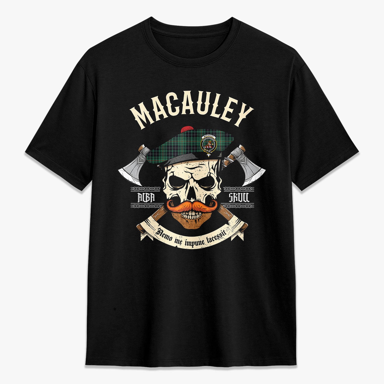MacAuley Hunting Ancient Tartan Crest 2D T-shirt - Alba Skull Style,