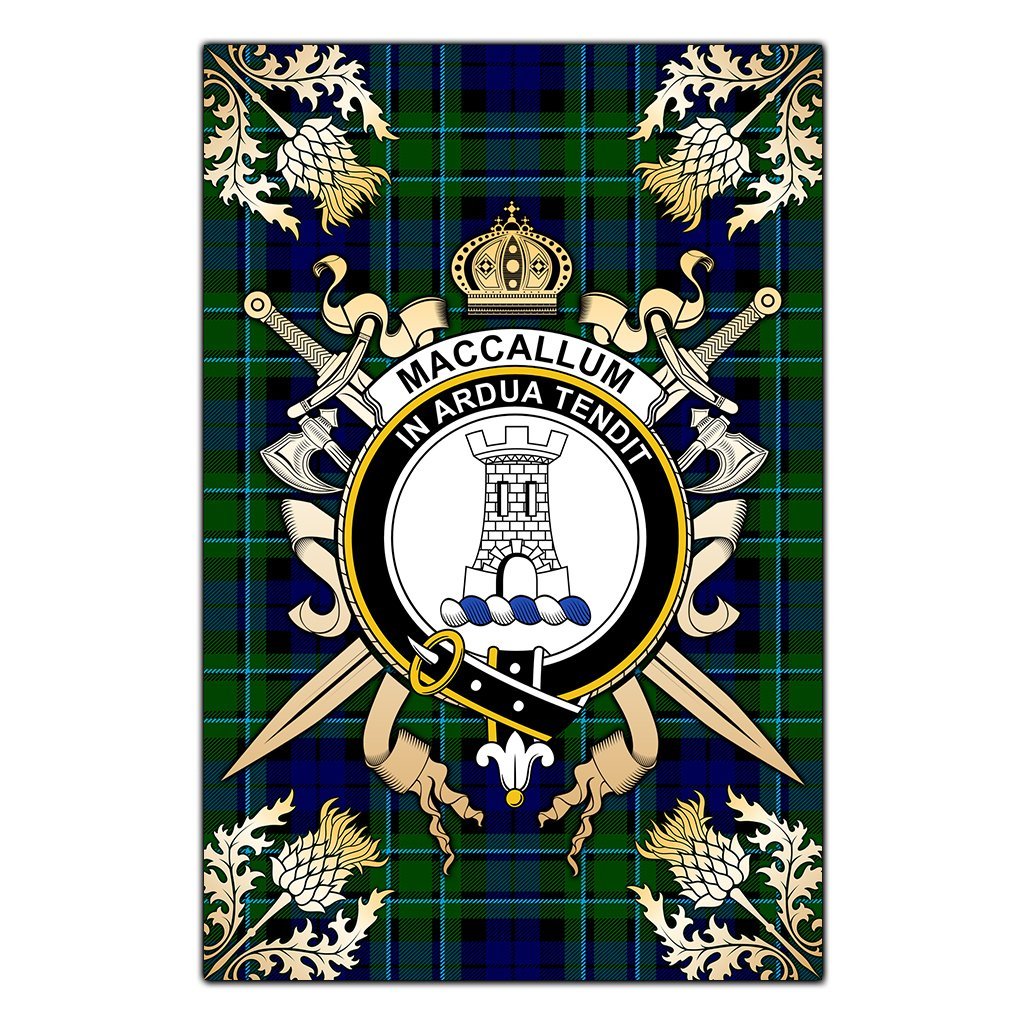 MacCallum Modern Tartan Crest Black Garden Flag - Gold Thistle Style
