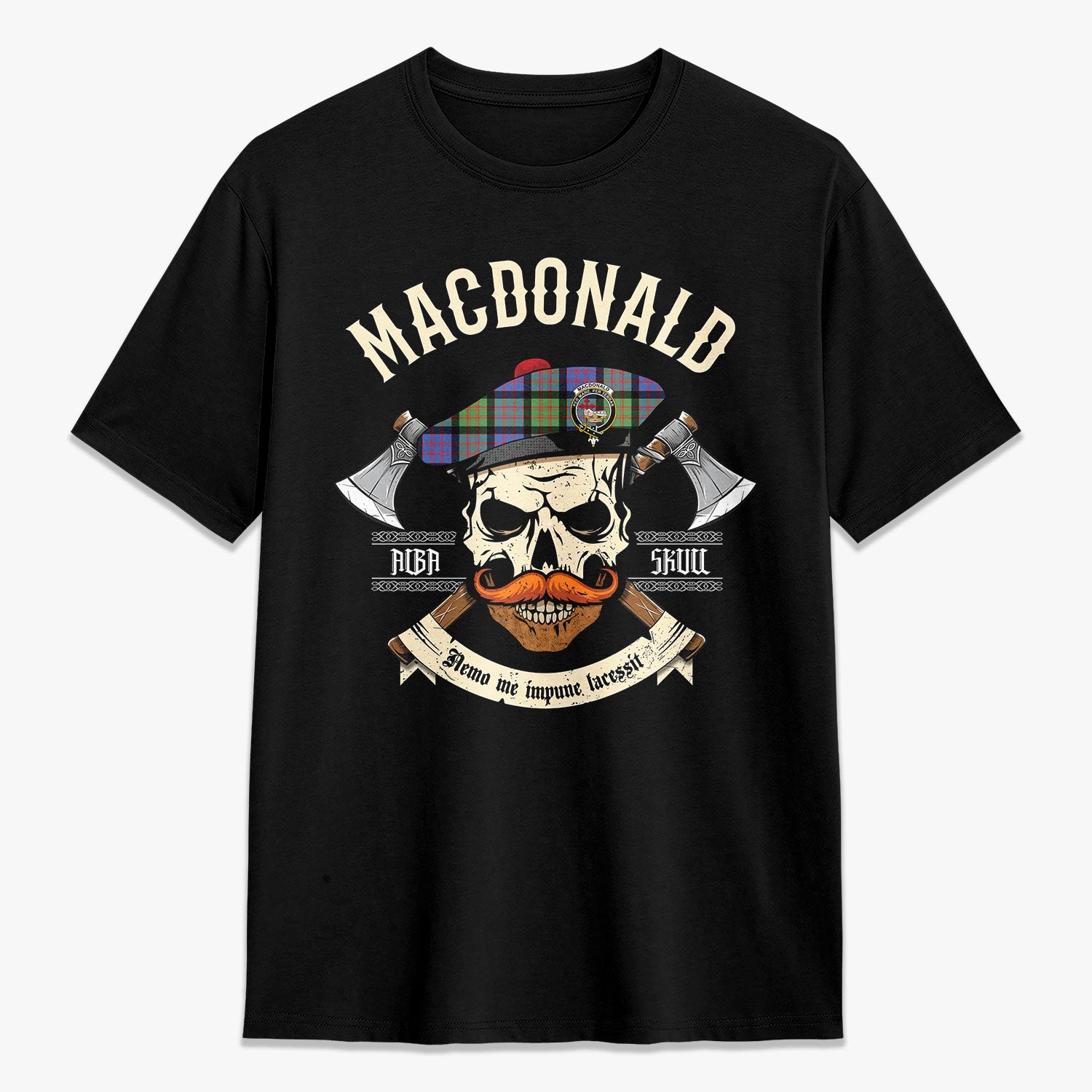 MacDonald Ancient Tartan Crest 2D T-shirt - Alba Skull Style,