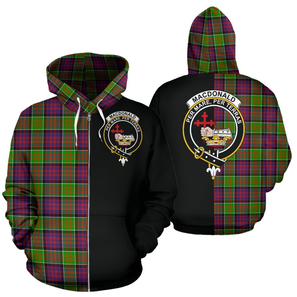 MacDonald of Clanranald Tartan Crest Zipper Hoodie - Half Of Me Style