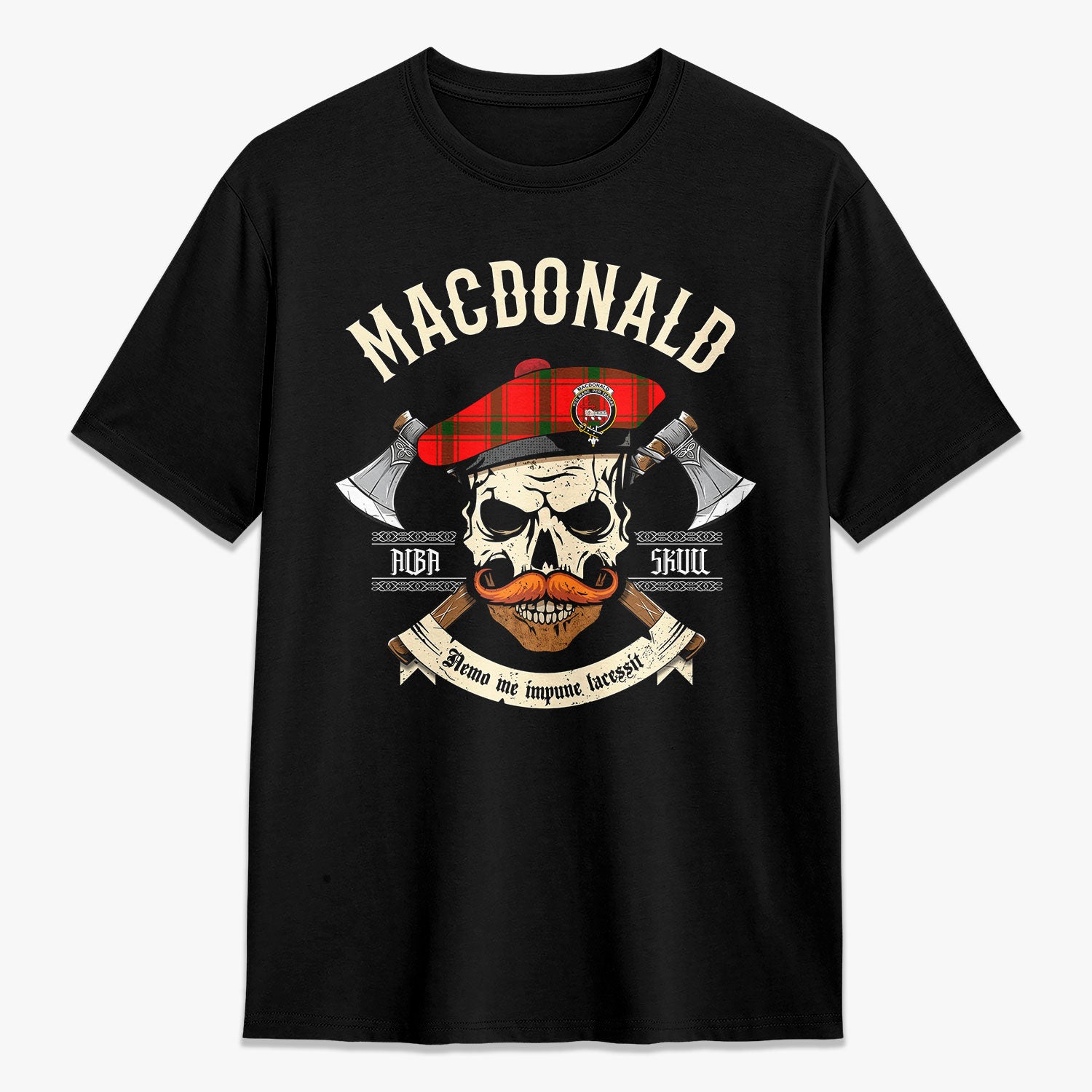 MacDonald of Sleat Tartan Crest 2D T-shirt - Alba Skull Style,