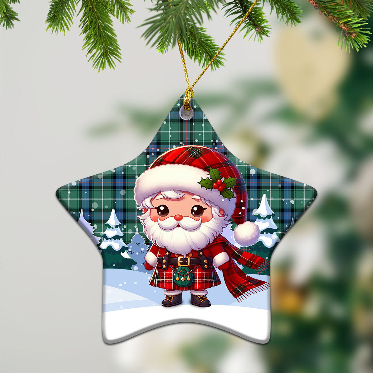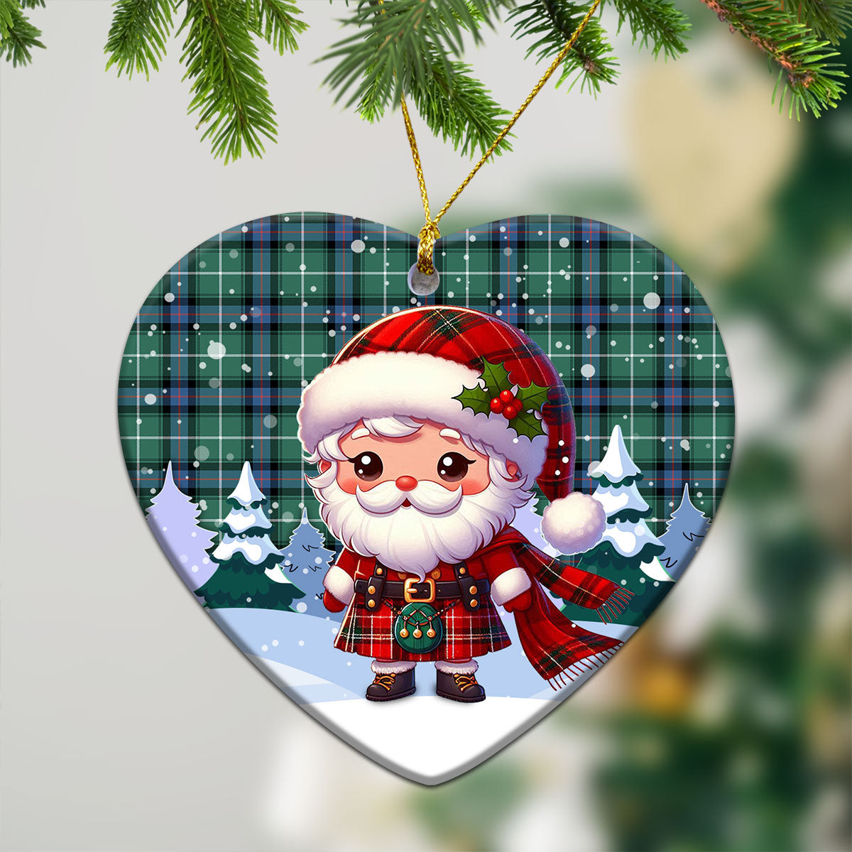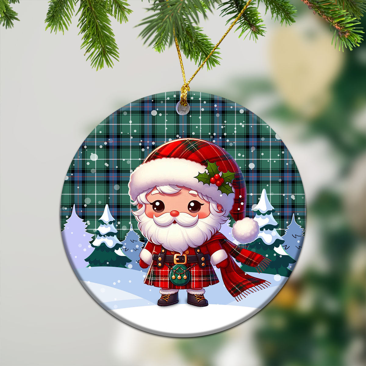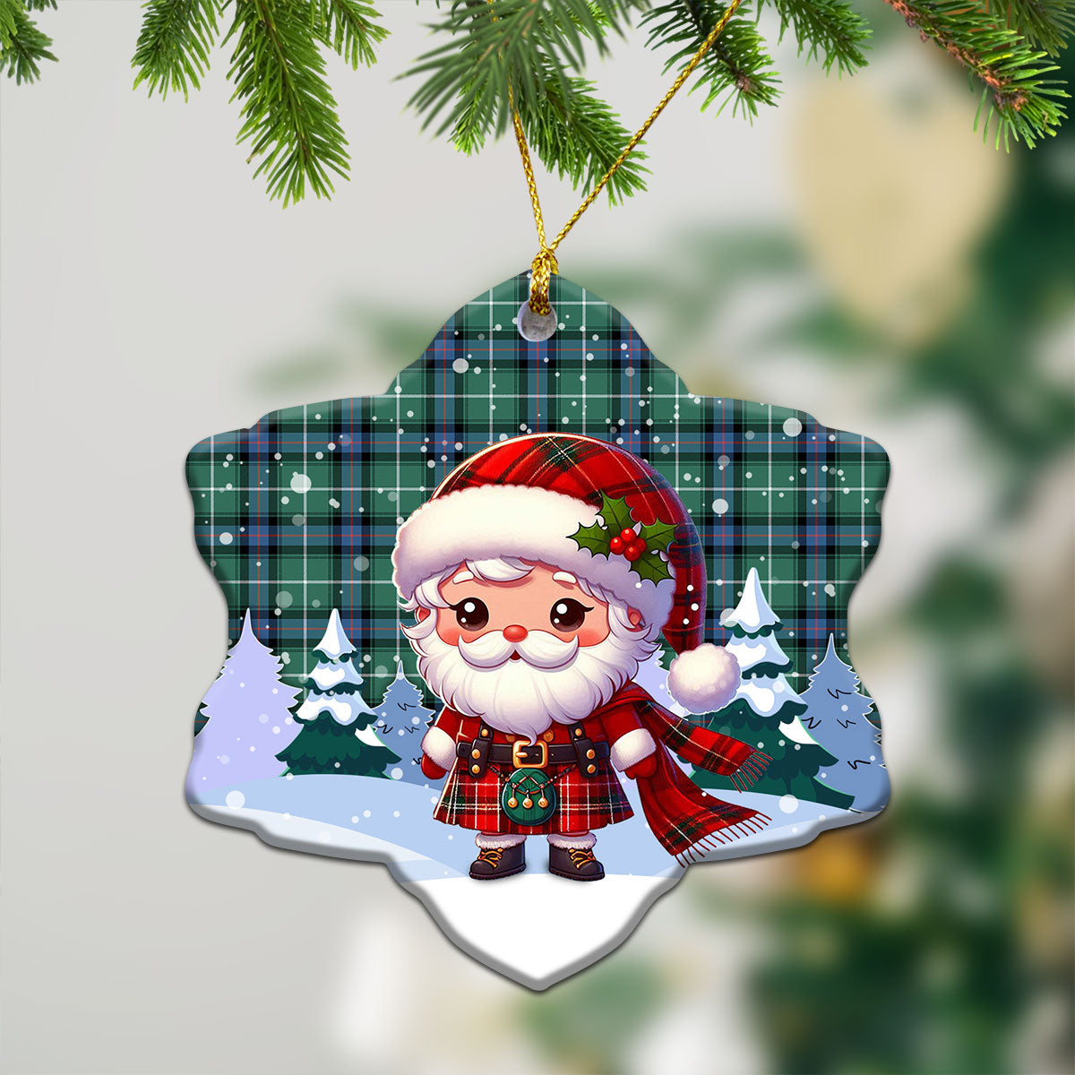 MacDonald of the Isles Hunting Ancient Tartan Christmas Ceramic Ornament - Santa Claus In Kilt Style