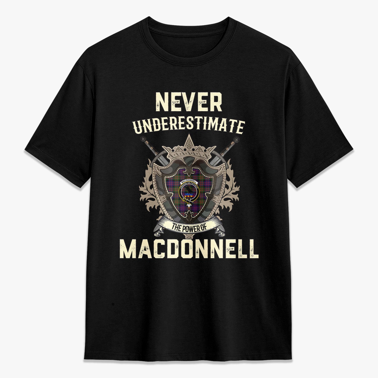 MacDonnell of Glengarry Modern Tartan Crest 2D T-shirt - Never Underestimate Style