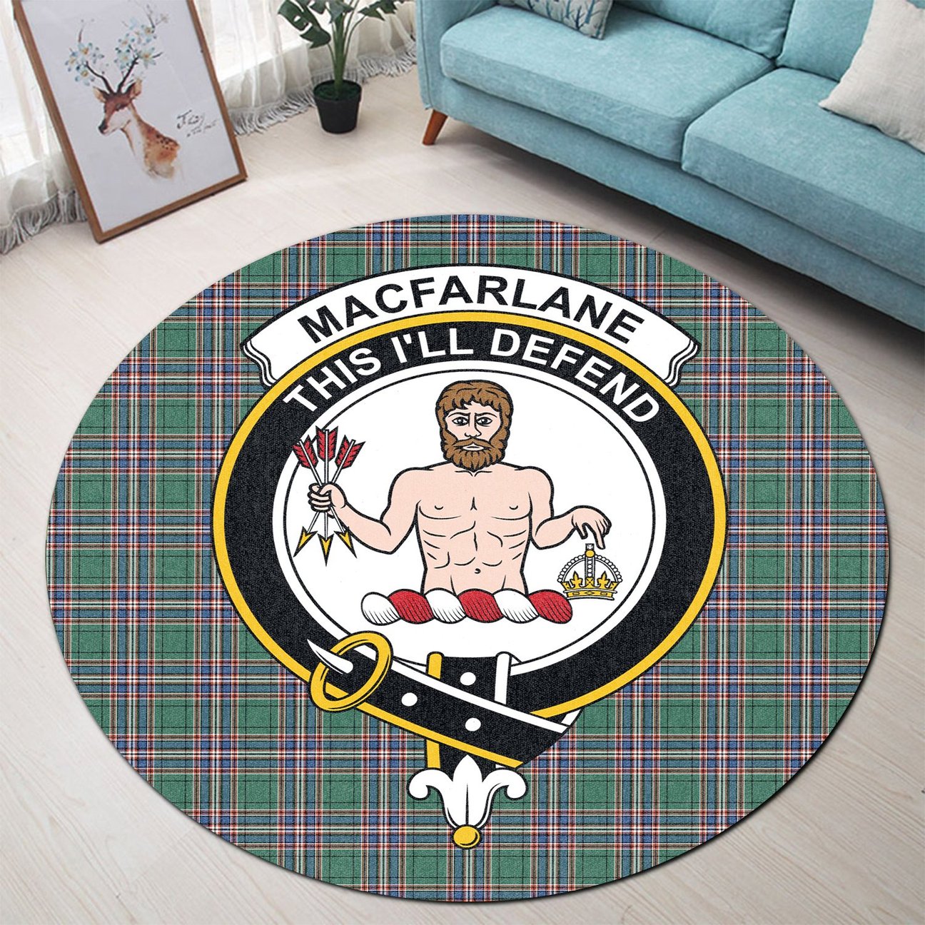 MacFarlane Hunting Ancient Tartan Crest Round Rug