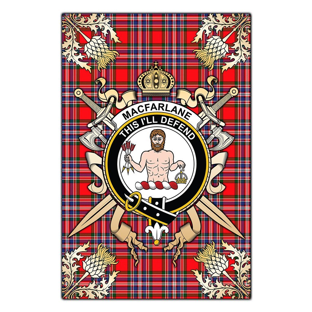 MacFarlane Modern Tartan Crest Black Garden Flag - Gold Thistle Style