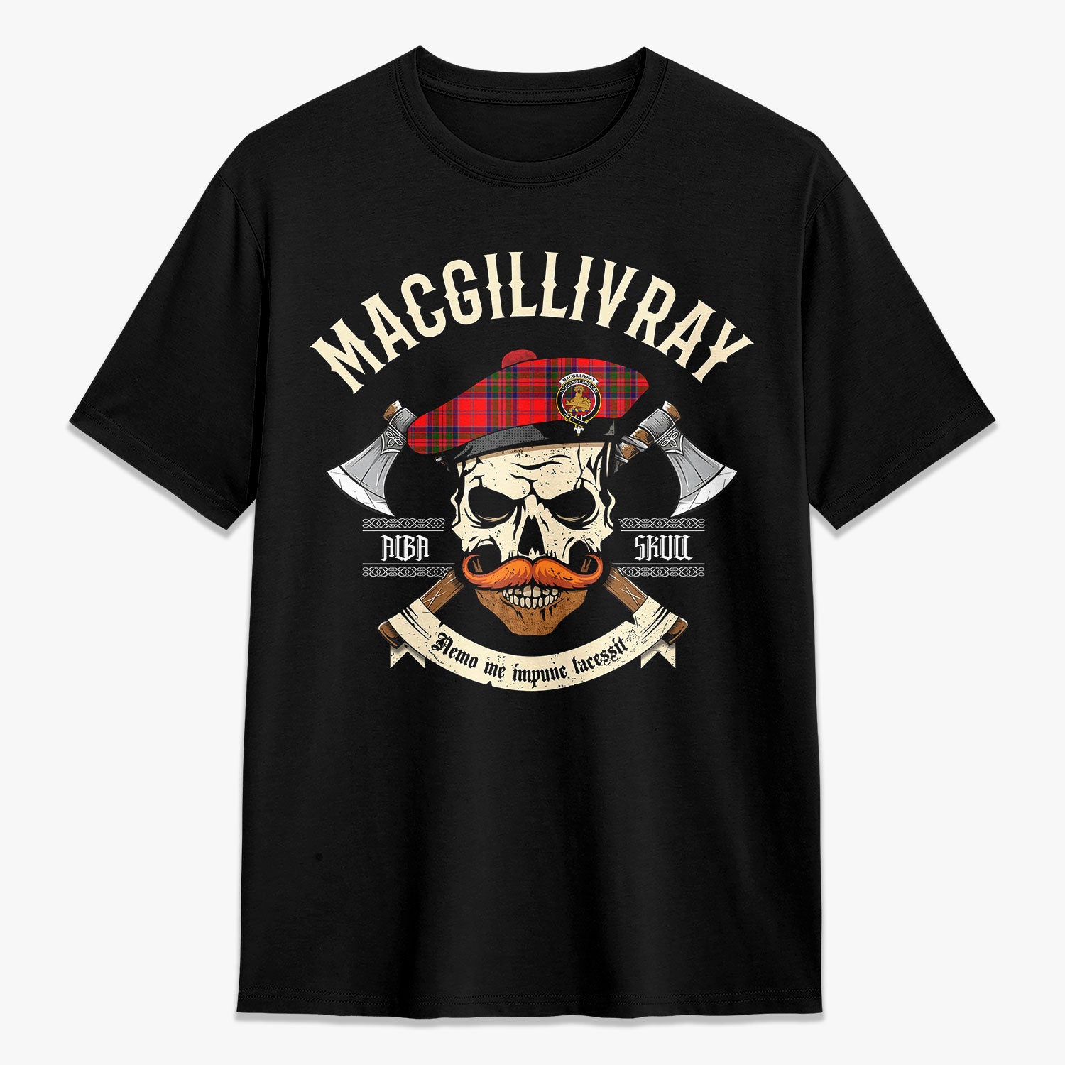 MacGillivray Modern Tartan Crest 2D T-shirt - Alba Skull Style
