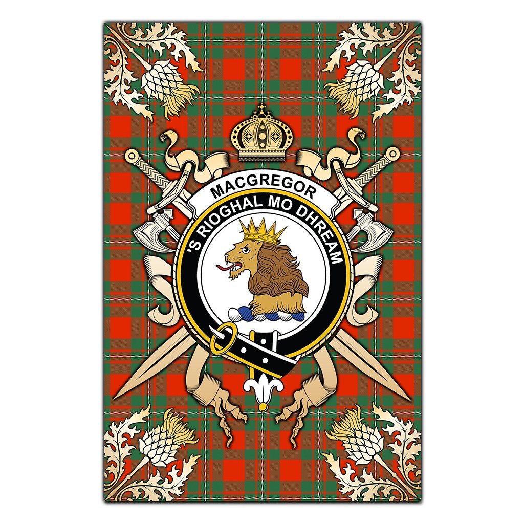 MacGregor Ancient Tartan Crest Black Garden Flag - Gold Thistle Style
