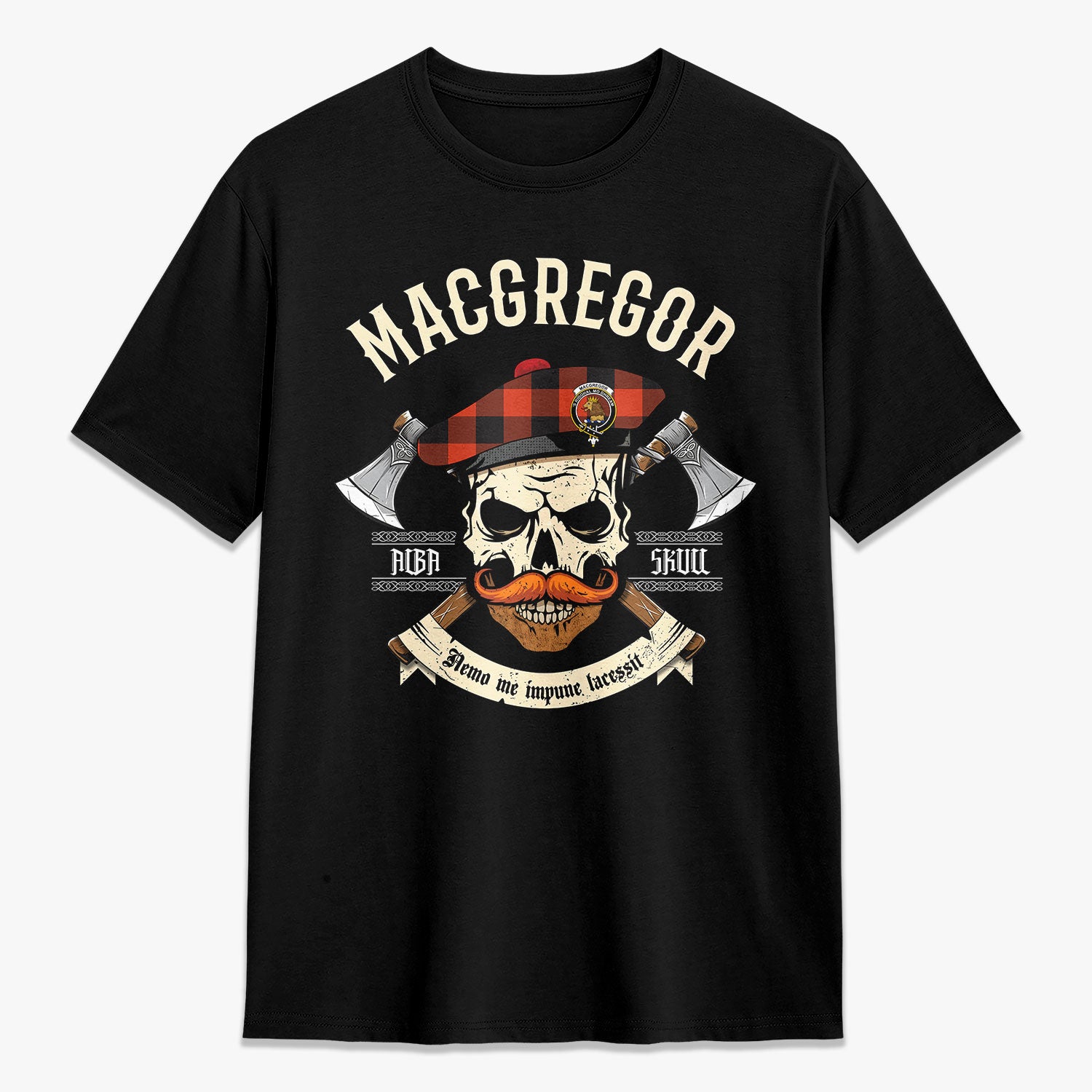 MacGregor Rob Roy Ancient Tartan Crest 2D T-shirt - Alba Skull Style,
