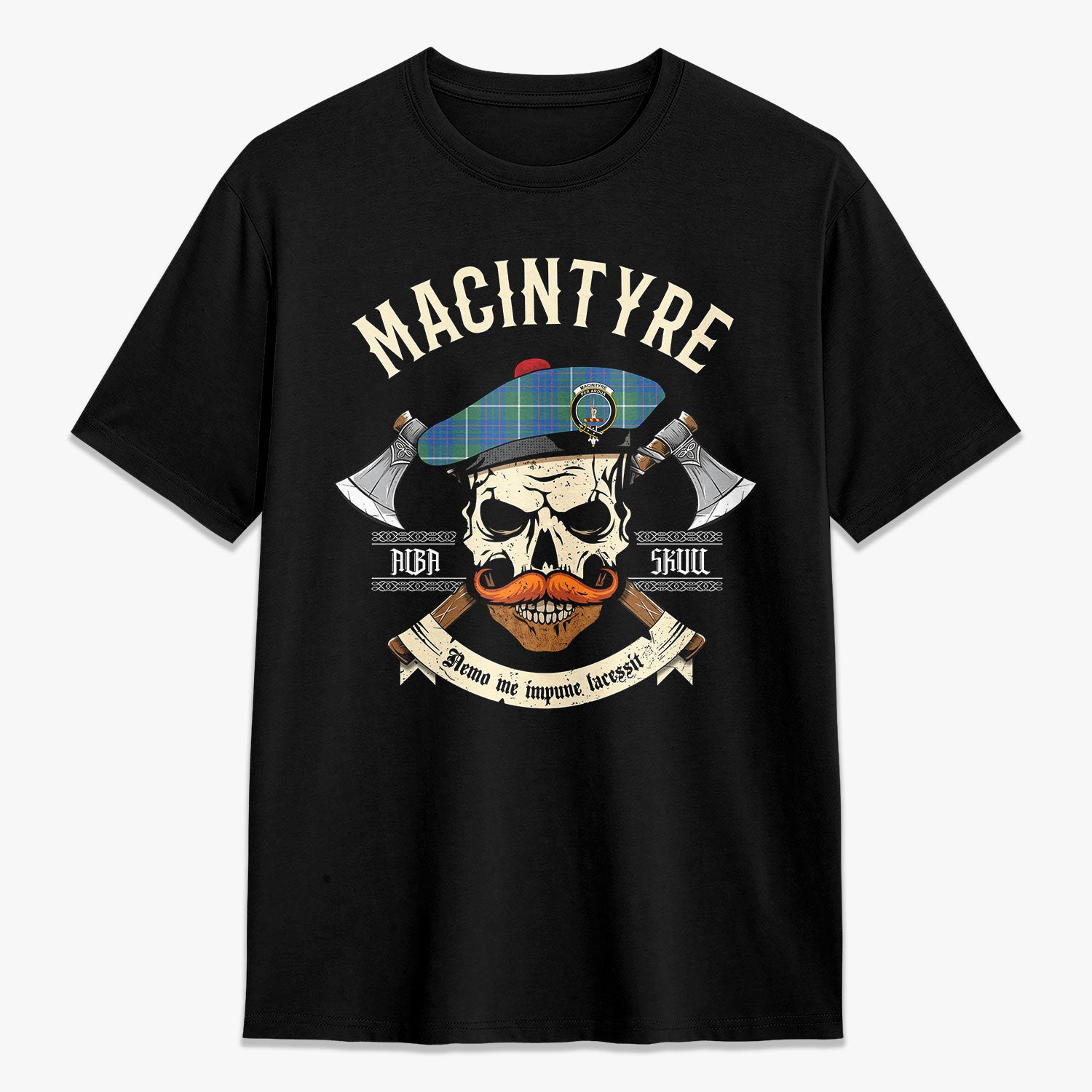 MacIntyre Hunting Ancient Tartan Crest 2D T-shirt - Alba Skull Style