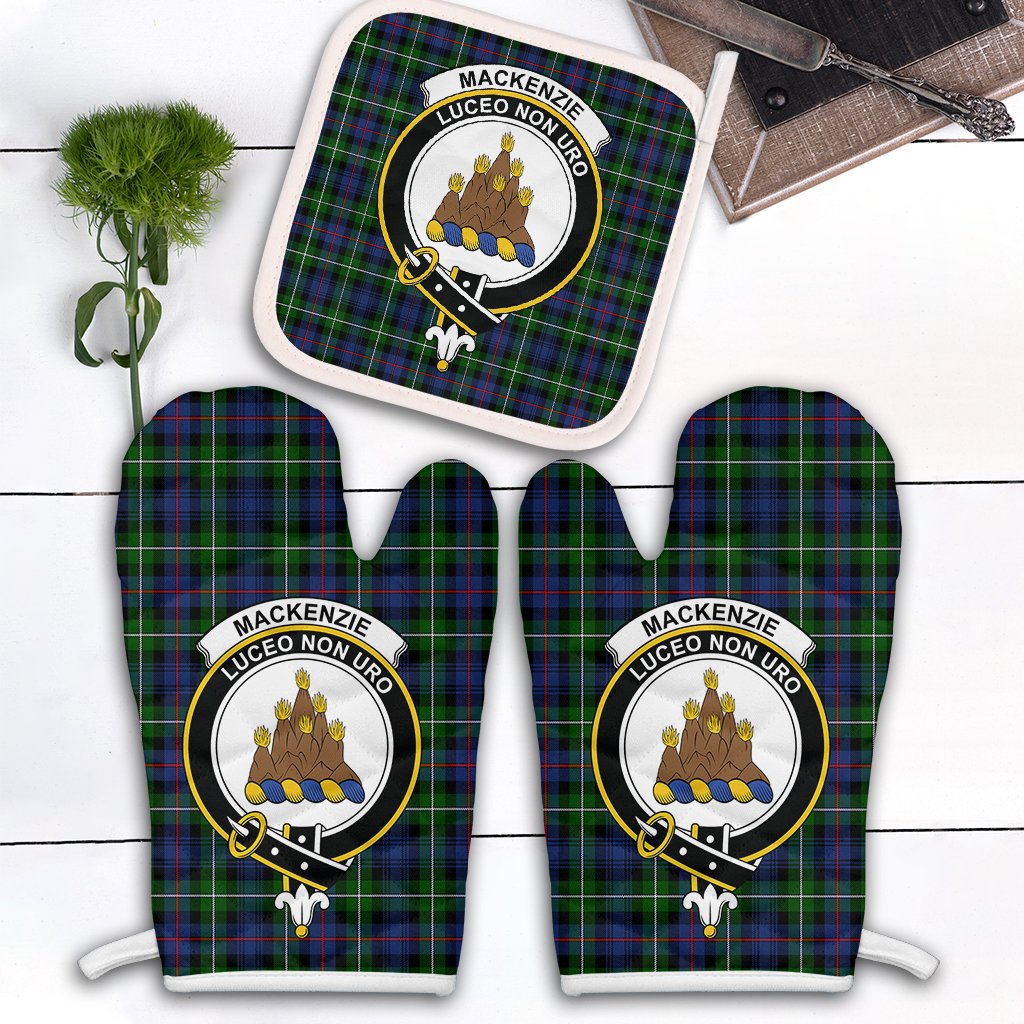 MacKenzie Modern Tartan Crest Oven Mitt And Pot Holder (2 Oven Mitts + 1 Pot Holder)
