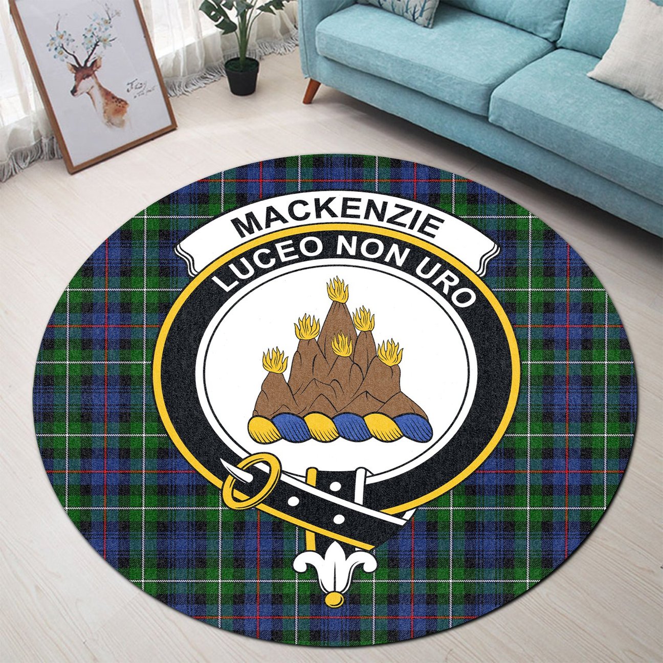 MacKenzie Modern Tartan Crest Round Rug