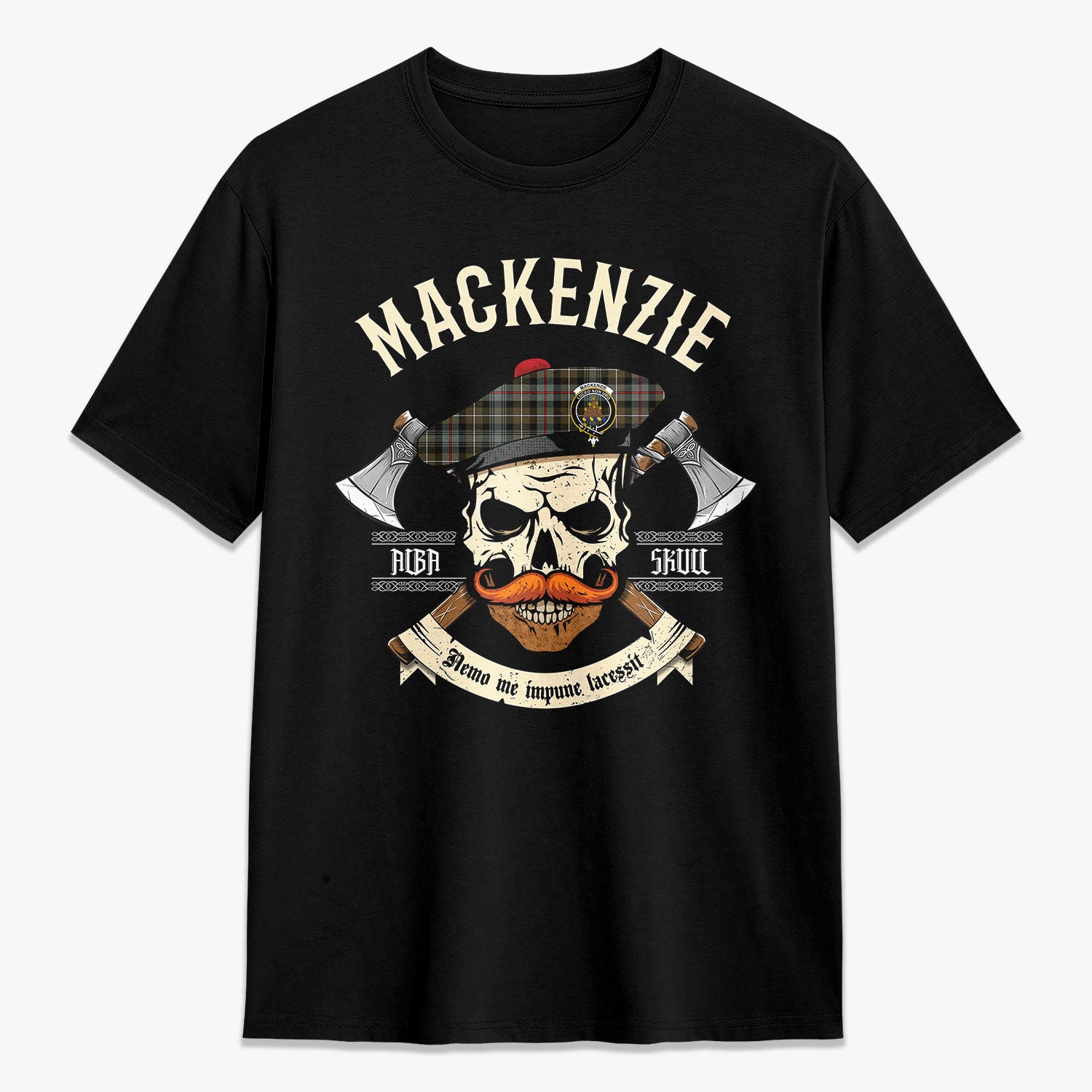 MacKenzie Weathered Tartan Crest 2D T-shirt - Alba Skull Style,