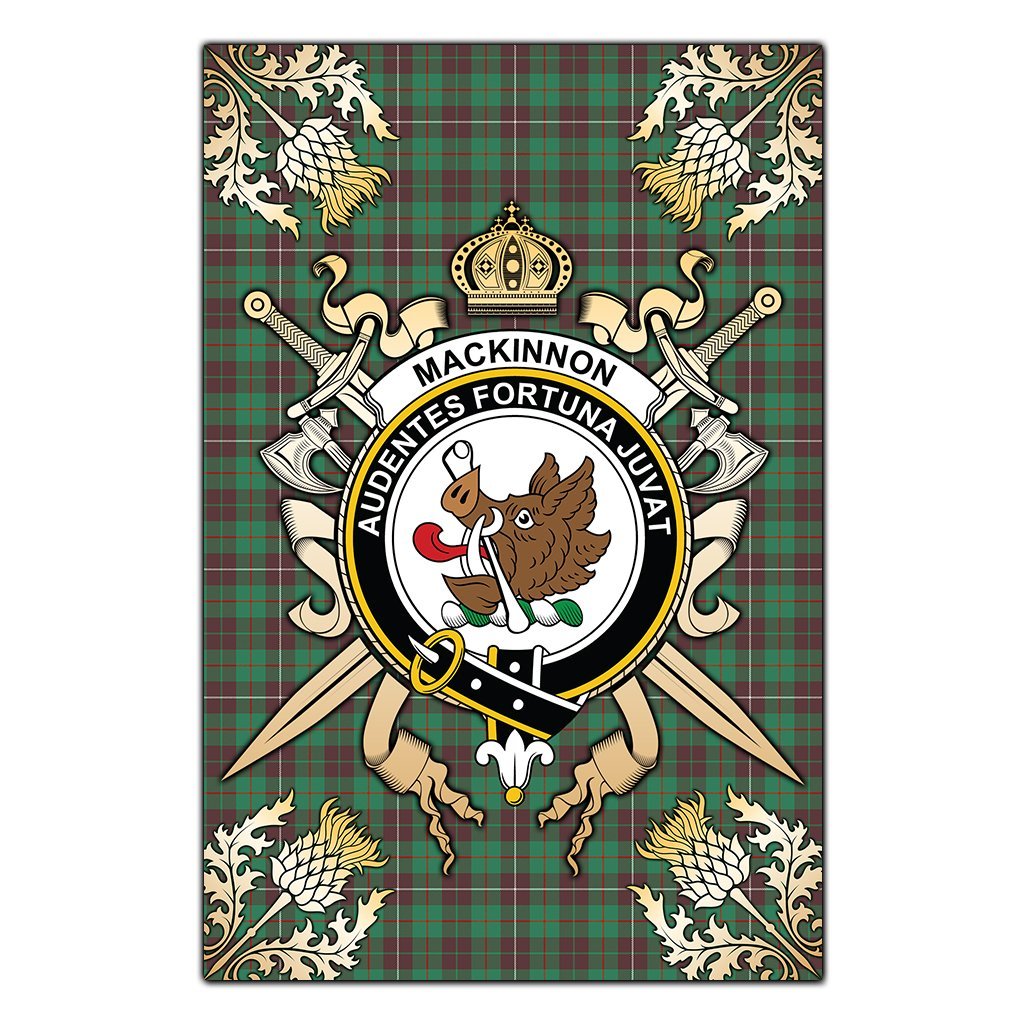 MacKinnon Hunting Ancient Tartan Crest Black Garden Flag - Gold Thistle Style