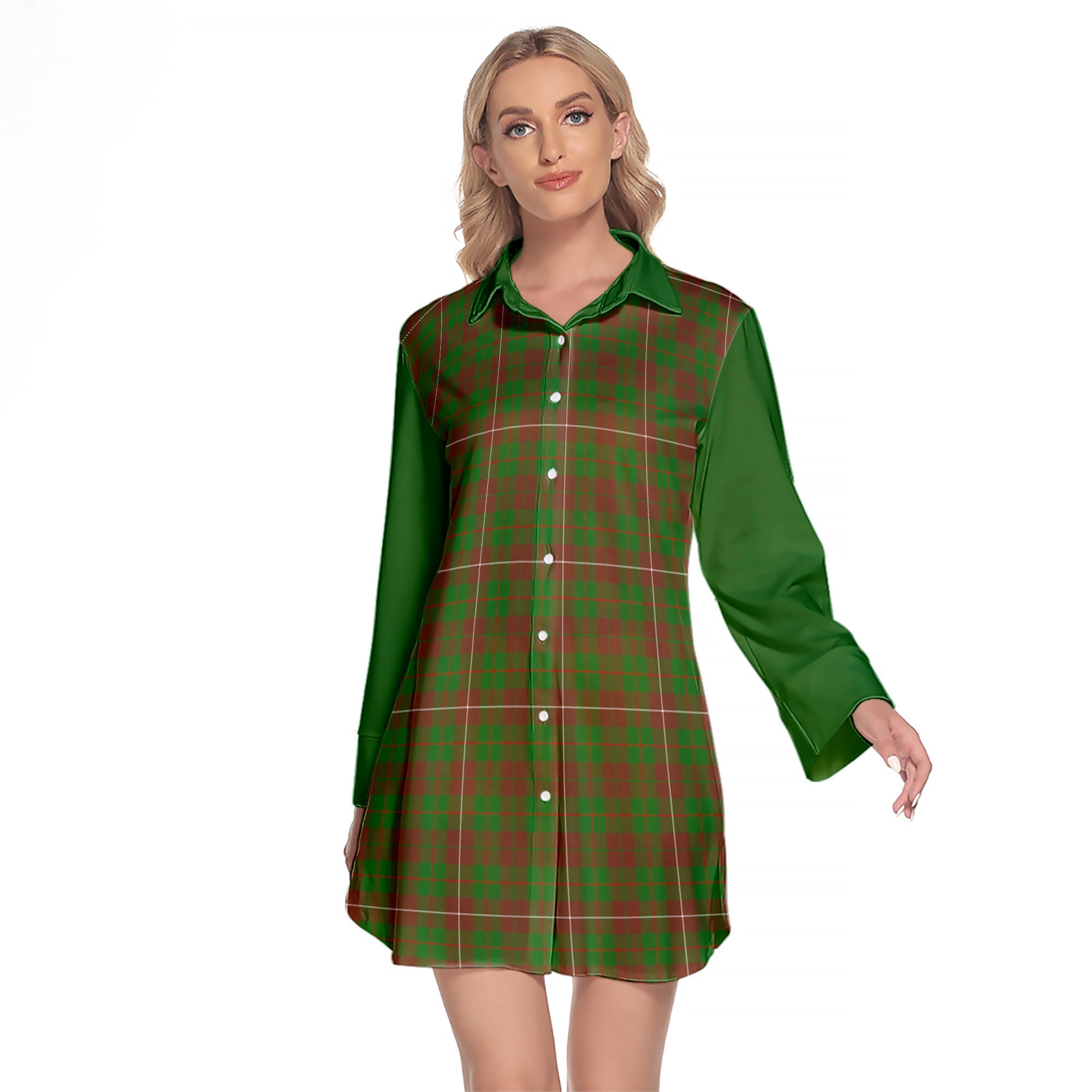 MacKinnon Hunting Modern Tartan Women's Lapel Shirt Dress With Long Sleeve