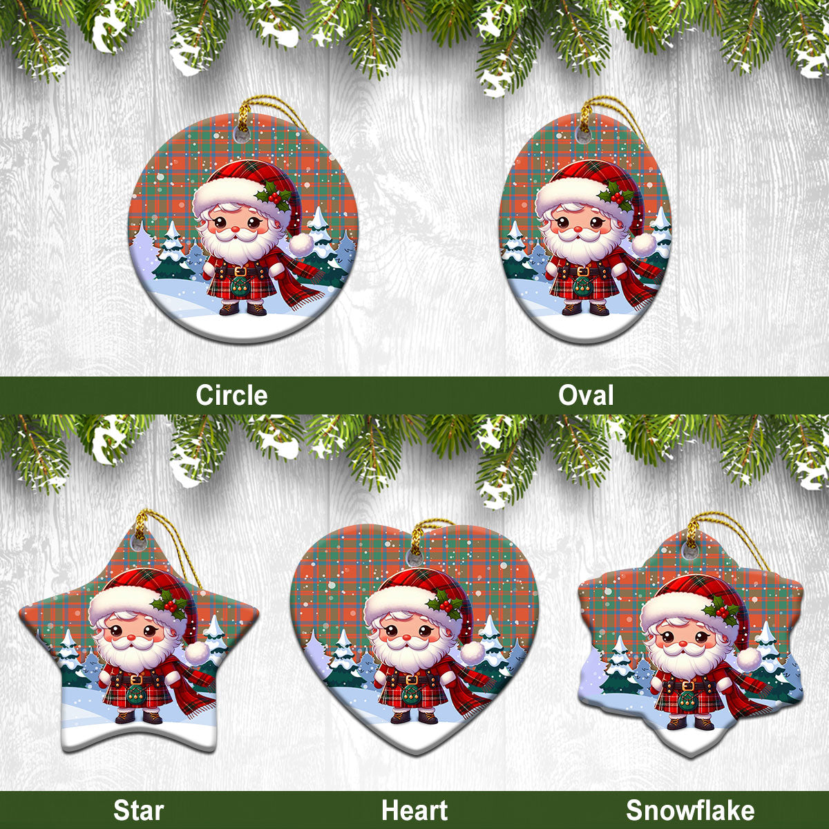 MacKintosh Ancient Tartan Christmas Ceramic Ornament - Santa Claus In Kilt Style