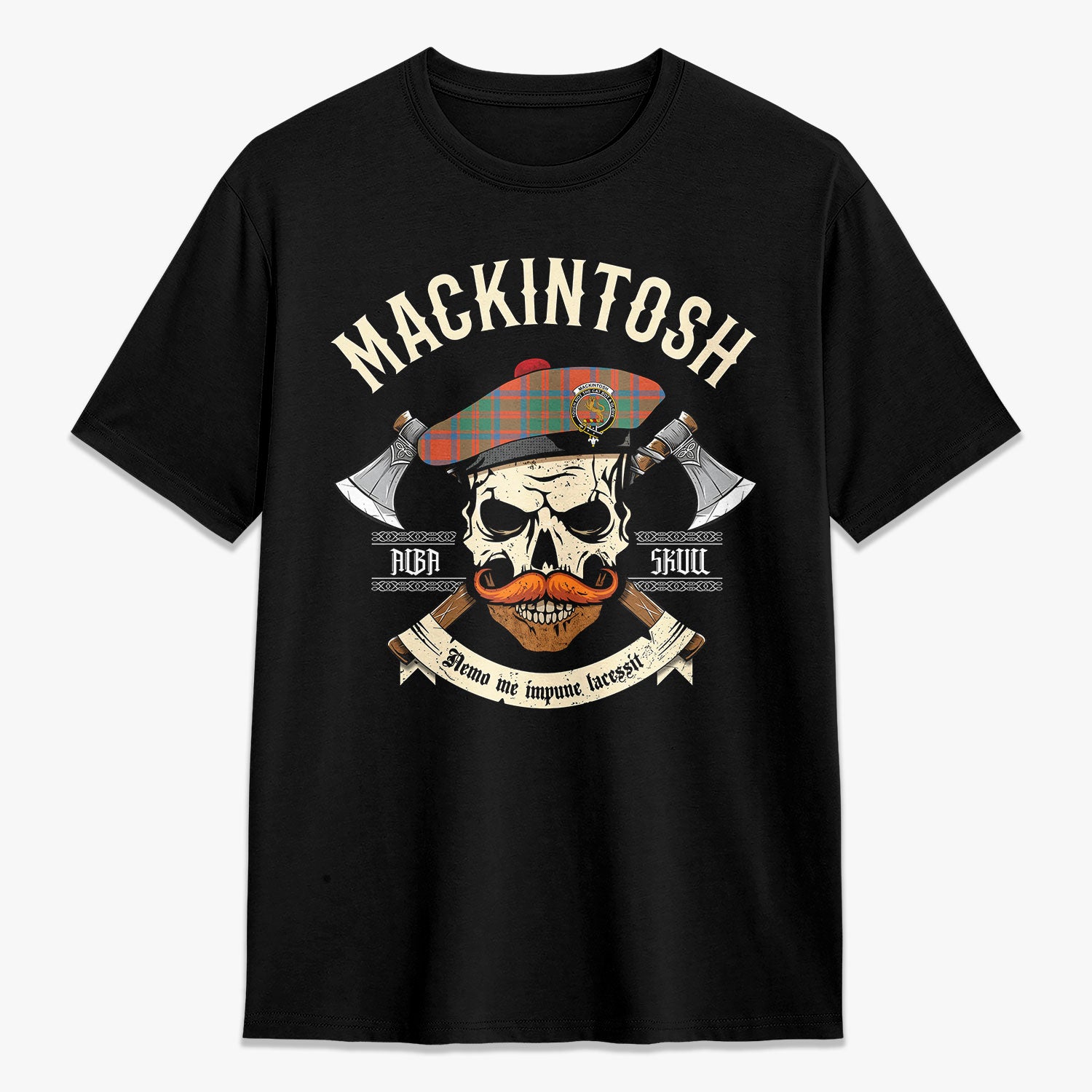 MacKintosh Ancient Tartan Crest 2D T-shirt - Alba Skull Style,